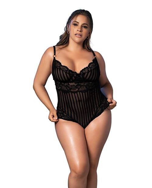 Original price was: $43.03.$33.35Current price is: $33.35. Add to cartShadow Stripe & Lace Teddy w/Hook & Eye Closure Black 2X/3X