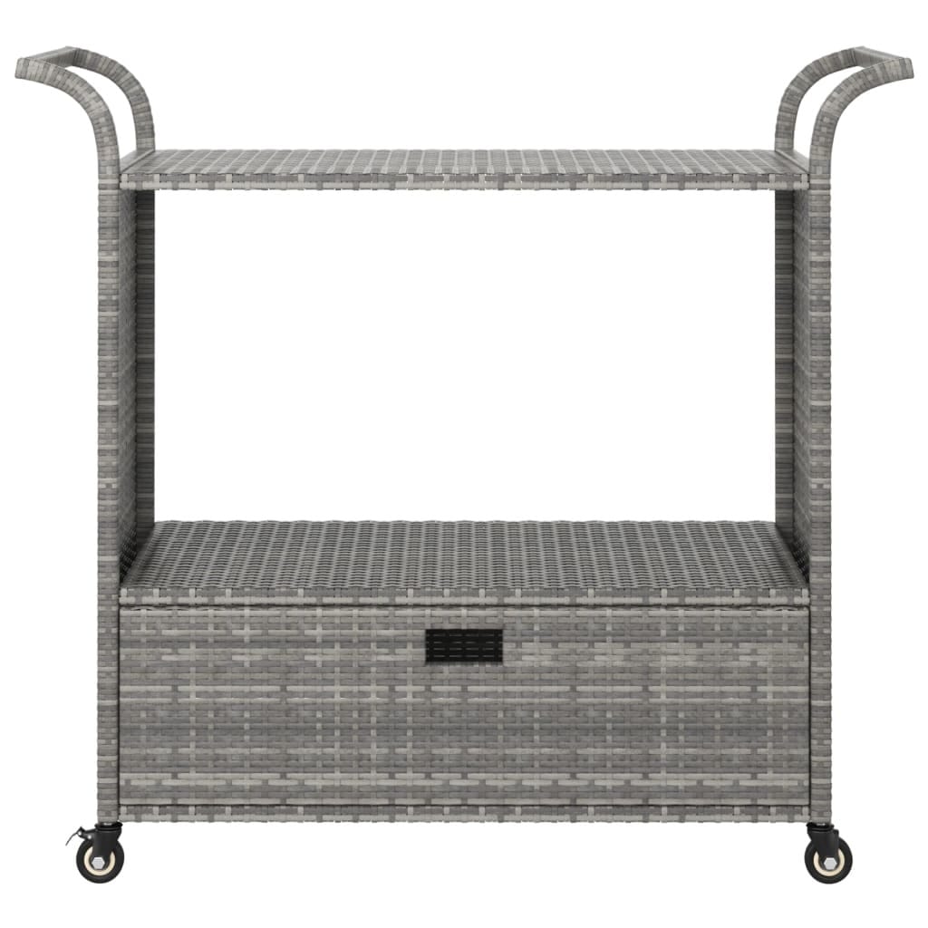 This trolley is made of poly rattan and is weather-proof, and need less maintenance. It is suitable for daily use. The garden cart has a drawer to prevent food from falling on the ground. The powder-coated steel frame keeps the serving cart stable and sturdy. The handle on the top makes it easy to push and pull. Thanks to the smoothly-rolling castors, the trolley can be moved around effortlessly. Additionally, two of the castors have a lock function to prevent the cart from rolling away.