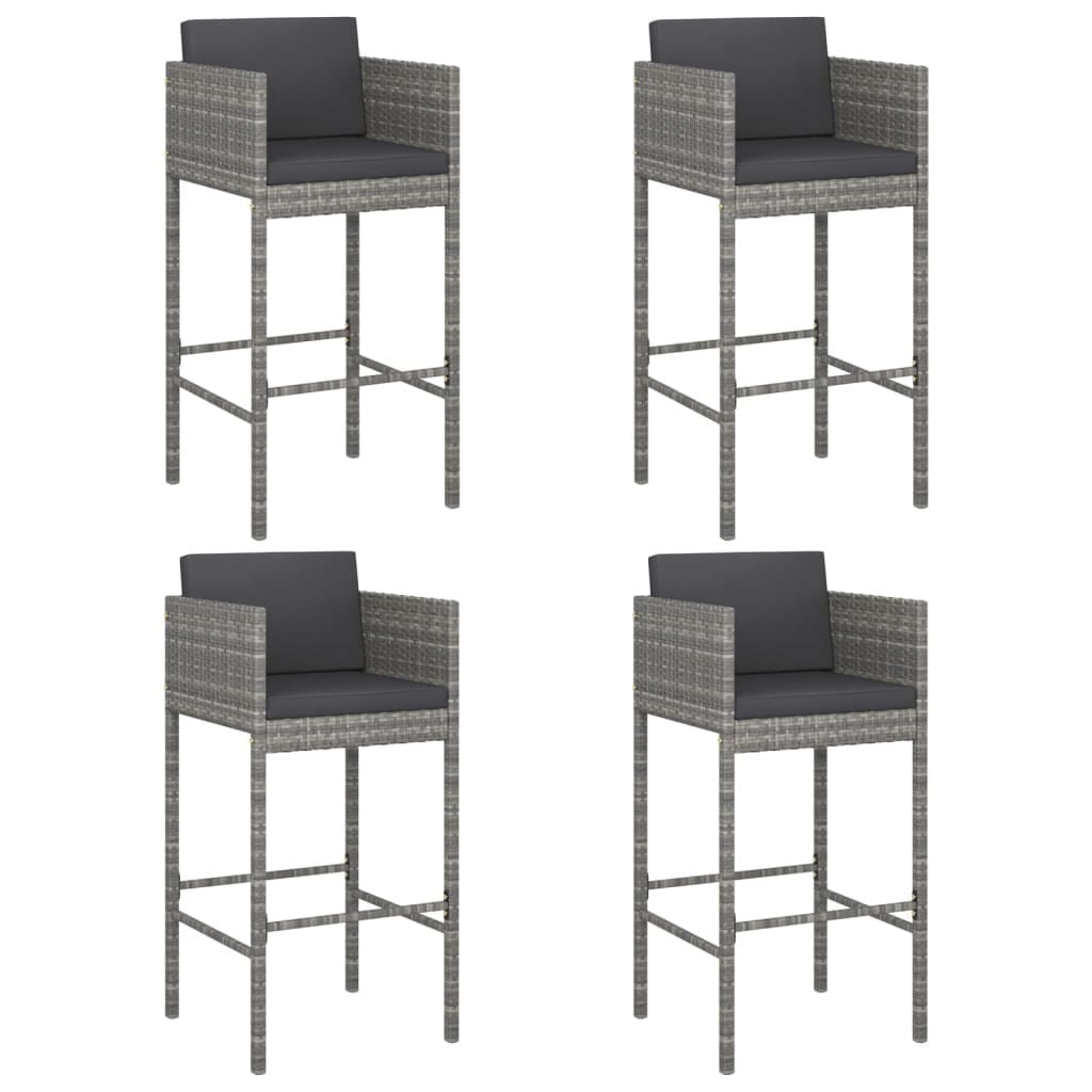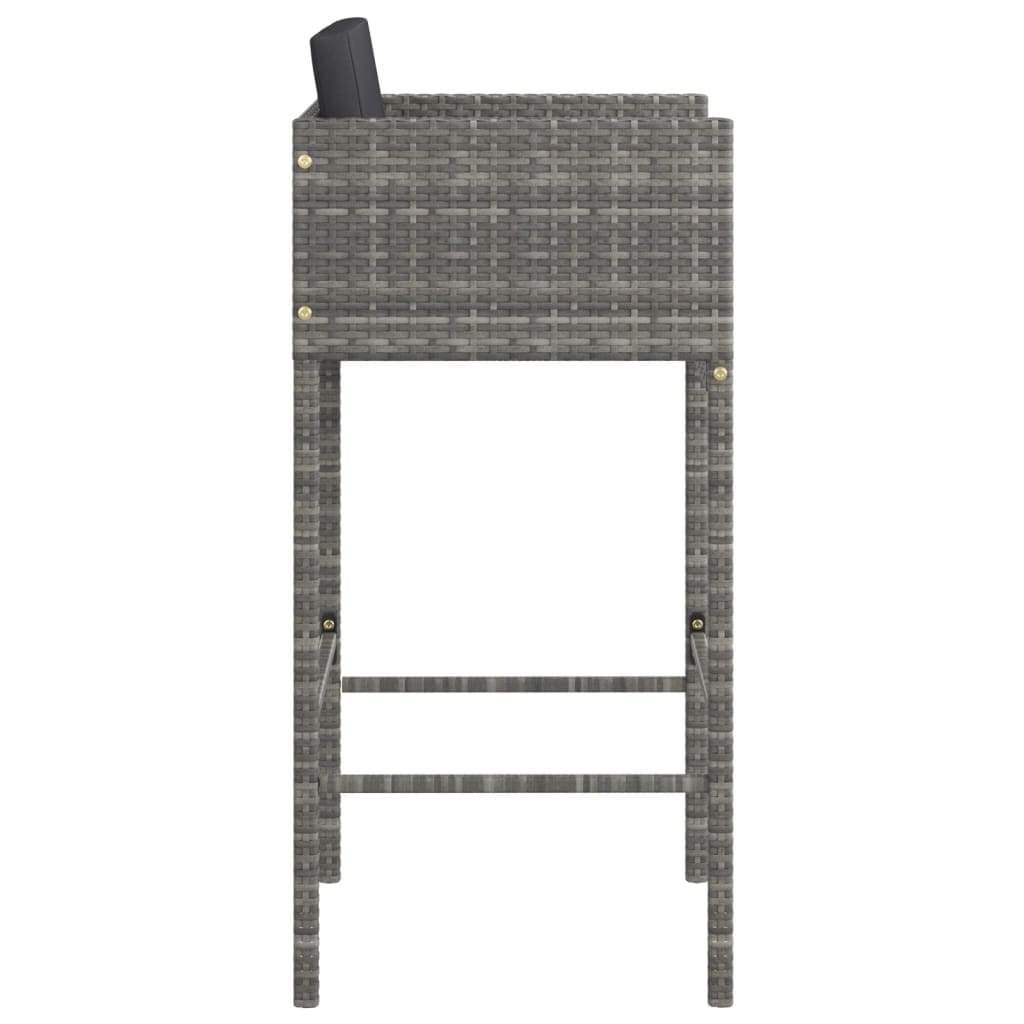 This stylish set of Grey Poly Rattan Bar Stools is a fantastic seating solution for any home bar or outdoor gathering. Crafted for comfort and elegance, these stools come with cushions for added comfort, making them perfect for lounging, whether at a kitchen counter or on a balcony.