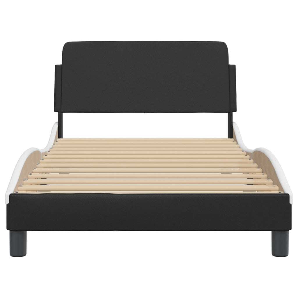 This twin bed frame’s got modern vibes, boasting a sleek black and white look that enhances any bedroom decor. With its smooth faux leather finish and solid plywood and metal build, it offers both style and stability, ensuring a comfy sleep space for adults.