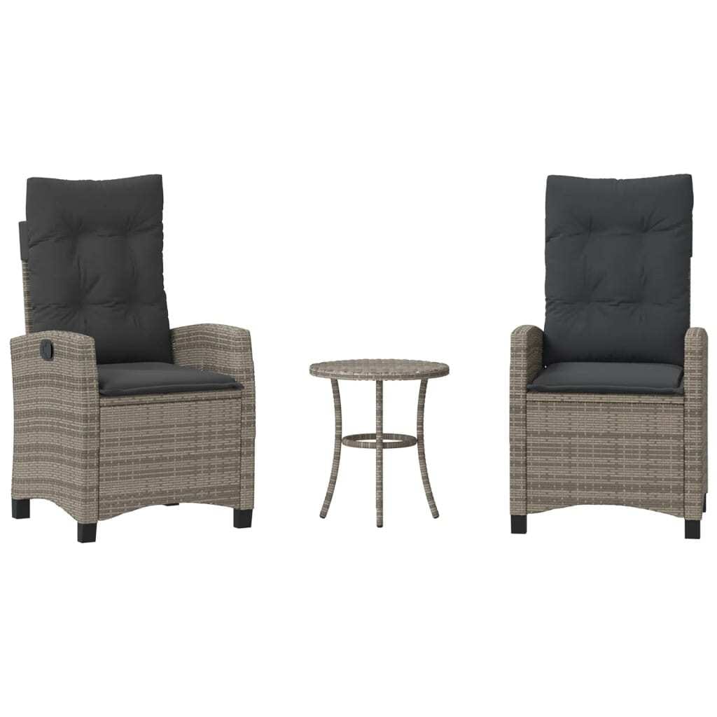 Bistro Set Grey Poly Rattan 2-seater Adjustable Armrests