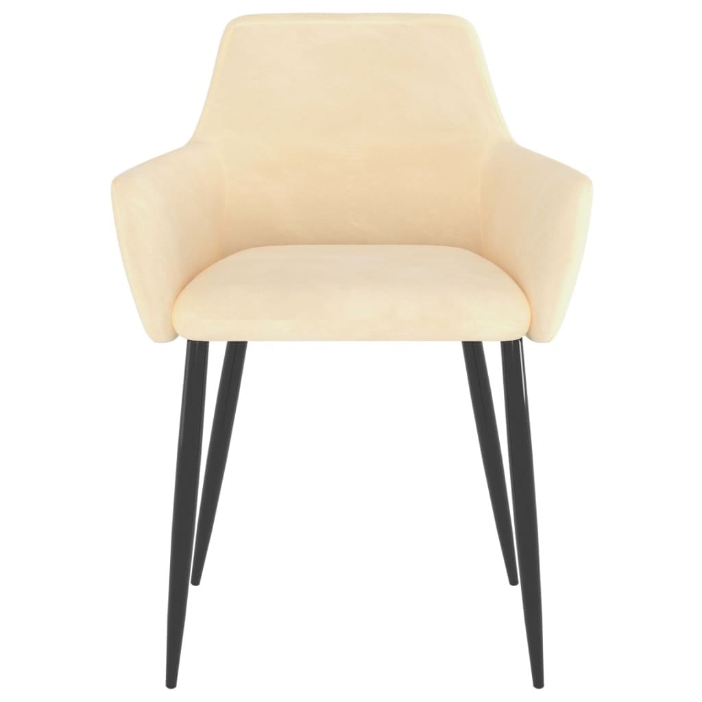 This awesome 4-piece dining chair set upgrades any dining area with its cream velvet upholstery and modern design, making it a great choice for those who love style and comfort. The chairs have smart tapered legs in black, providing a sleek contrast that fits chic interiors while ensuring stability for daily use.