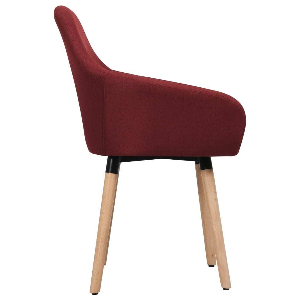This dining chair set, in a vibrant wine red fabric, blends modern style with usefulness. The chairs sport a lovely black frame, paired with solid beech wood legs that boost their appeal and provide solid support, making them perfect for dining rooms and living areas.