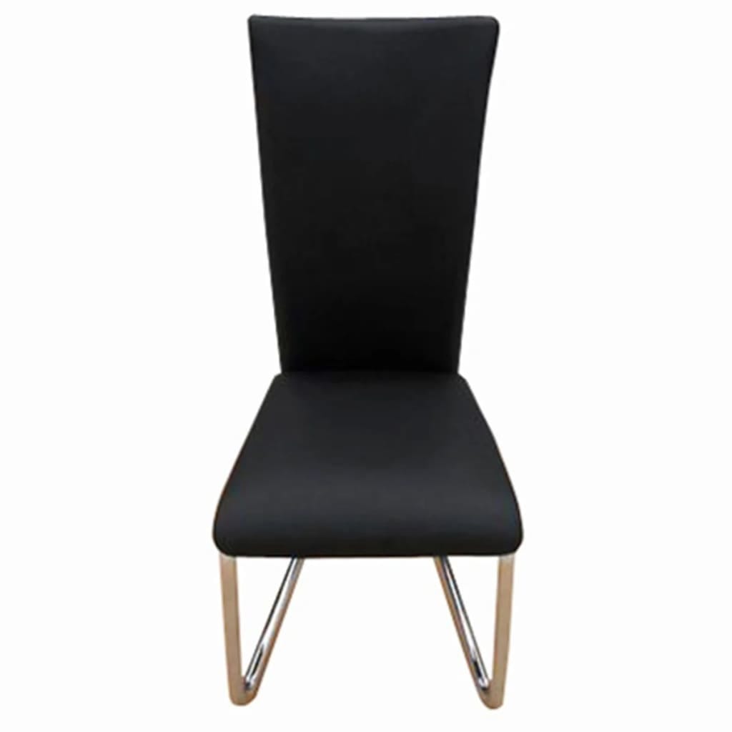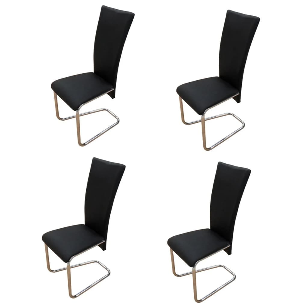 This lovely set of four dining chairs is stylish and practical, perfect for modern dining areas. Upholstered in black faux leather, these chairs have a sleek look that goes well with different table styles and keeps your family and guests comfy during meals.