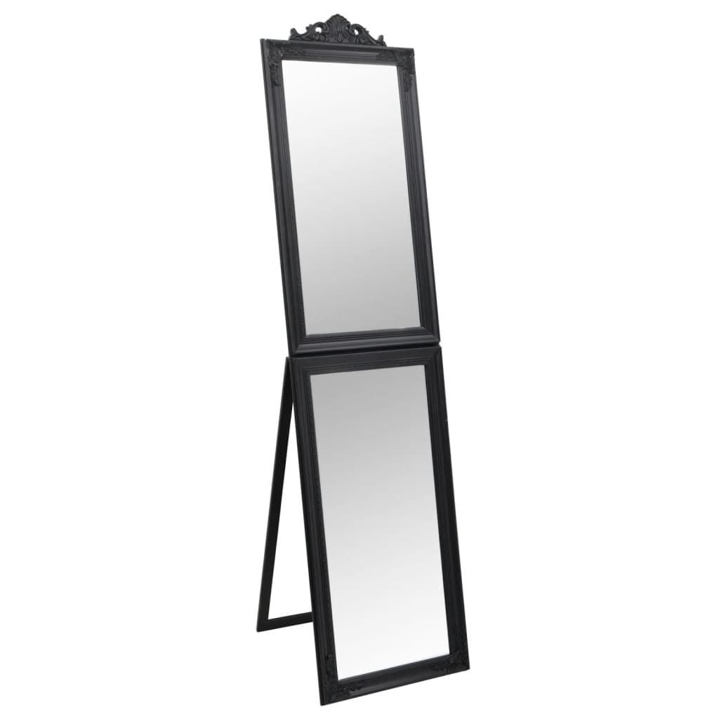 This elegant black freestanding mirror is a stunning addition to any indoor space. Perfect for all your grooming and decorating needs, its stylish design lifts the mood of bedrooms, hallways, and dressing rooms, making it both practical and beautiful.