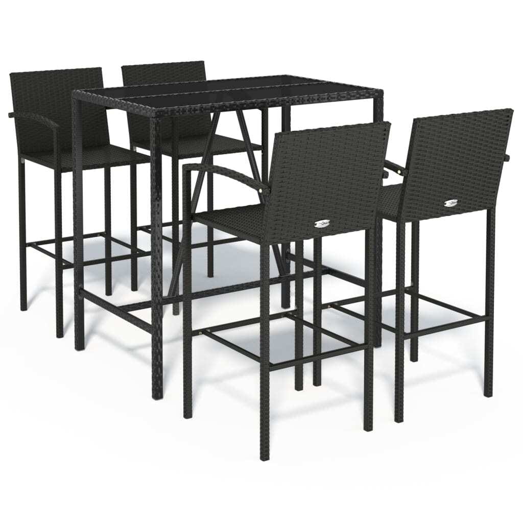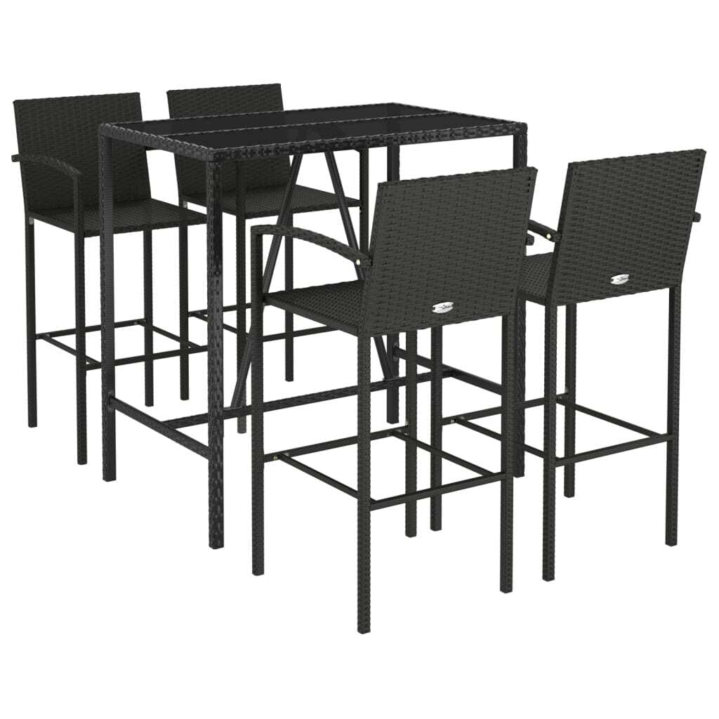 This 5 Piece Modern Garden Bar Set mixes style and practicality with a sleek black poly rattan finish and tempered glass surface, great for indoor and outdoor spots. The striking yet simple design matches any contemporary decor, making it the perfect place for family and friends during barbecues or casual meals, adding elegance and charm to any balcony, garden, or patio.