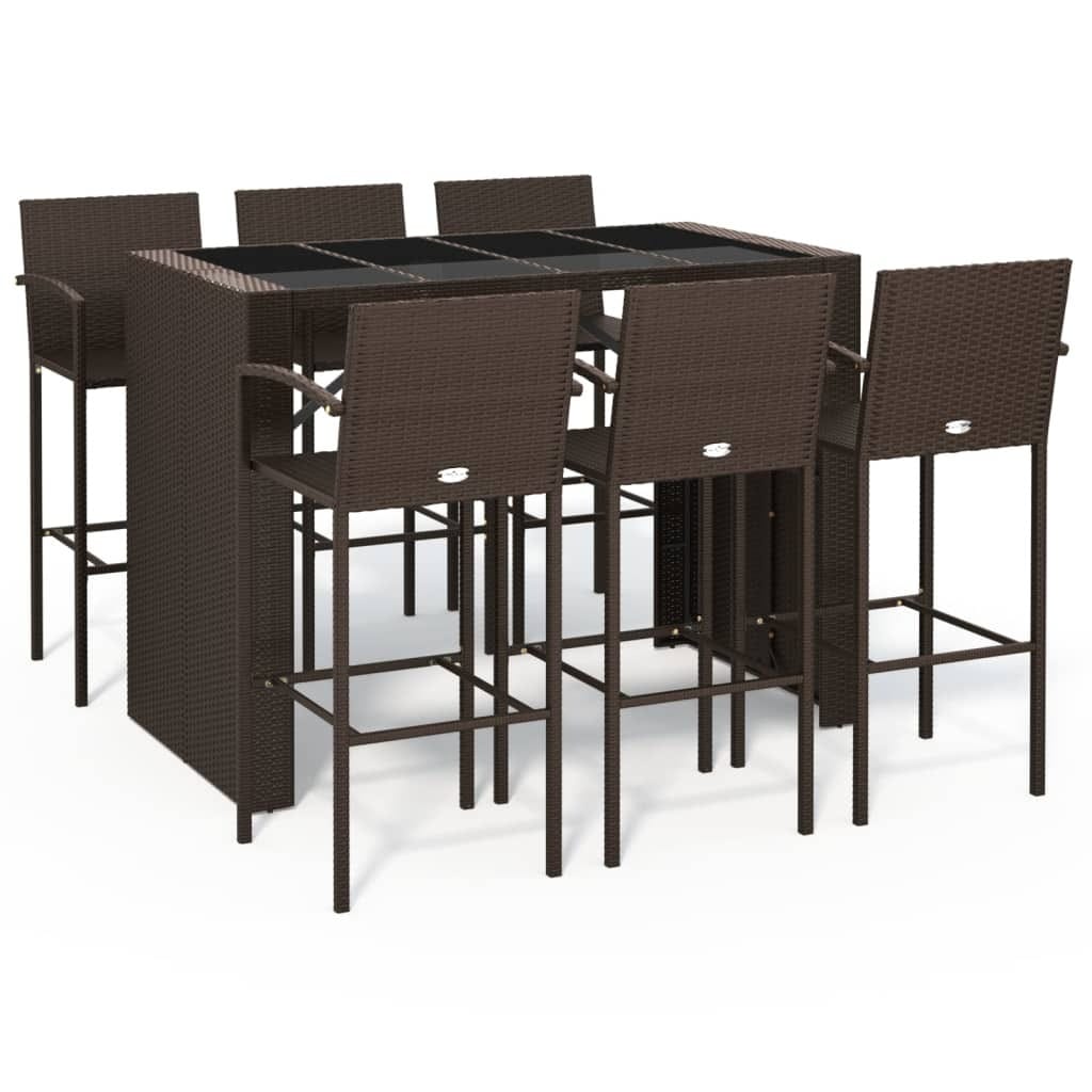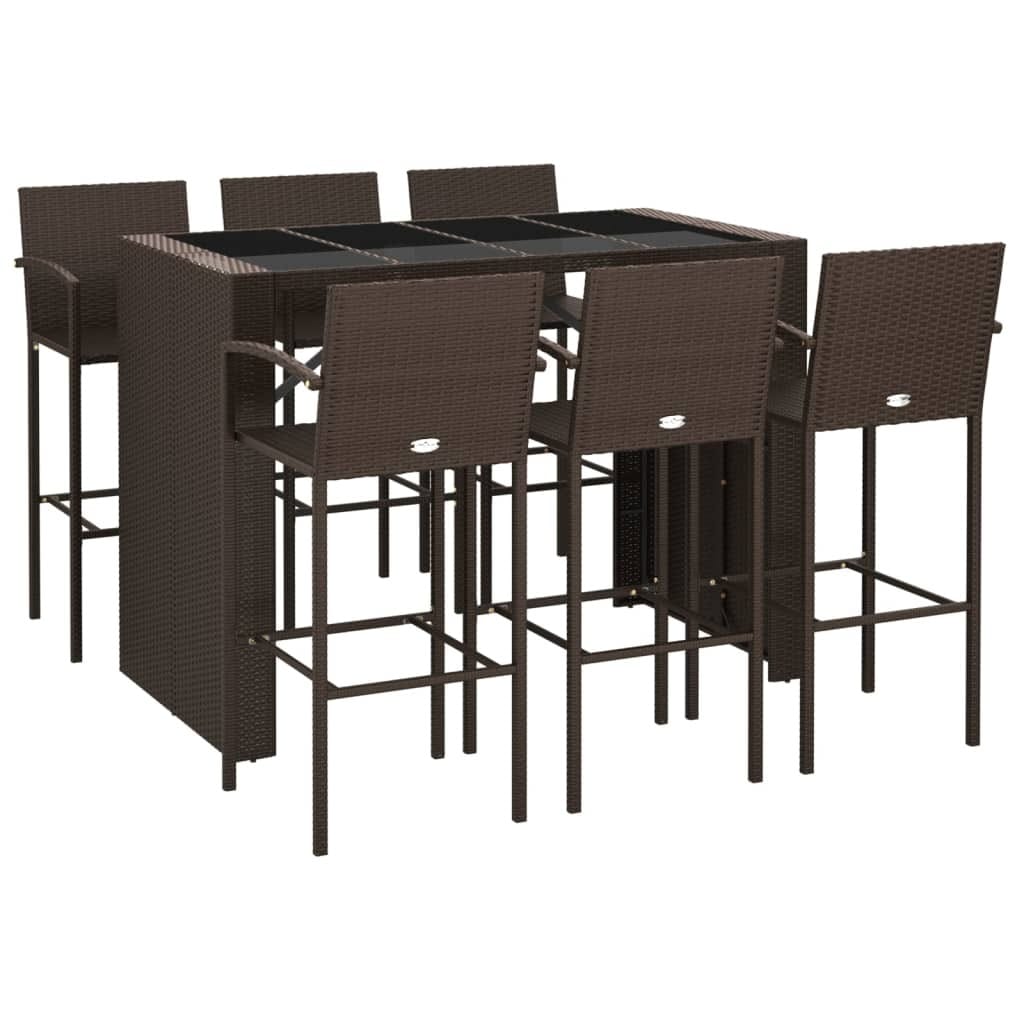 This 7-Piece Outdoor Garden Bar Set turns outdoor spaces into classy gathering spots, featuring a large rectangular table with six comfy stools. Made with weather-resistant PE rattan and a tempered glass top, this set blends style and function perfectly, making it ideal for parties, barbecues, or laid-back evenings in the garden.