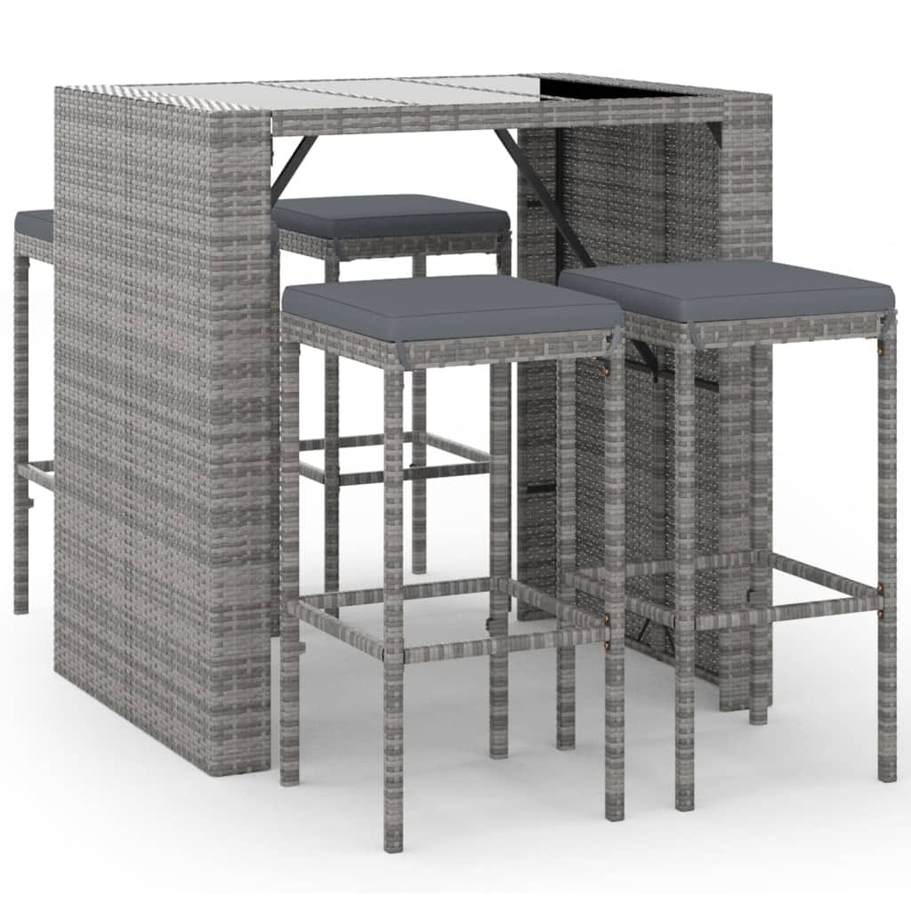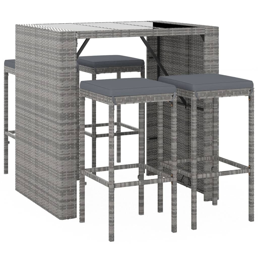 Garden Bar Set Grey PE Rattan, Powder-Coated Steel, Tempered Glass