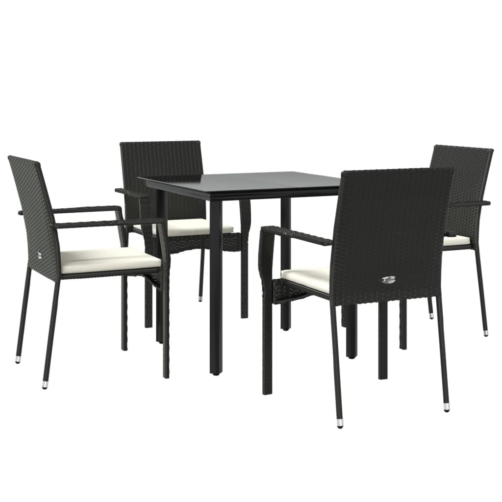 This 5-Piece Garden Dining Set is ideal for outdoor dining, whether on a cozy balcony or a spacious patio. Its sleek design combines black poly rattan and tempered glass, enhancing visual appeal while ensuring durability and comfort, making it perfect for gatherings and peaceful meals in the sun.