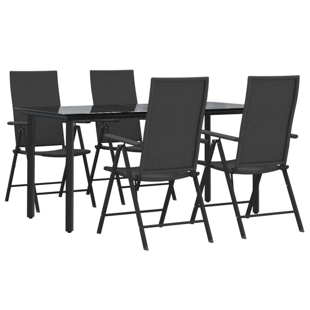 This 5-piece outdoor dining set spruces up your patio or garden with a sleek and modern style that fits right in with your outdoor décor. It features a spacious table and four comfy chairs, perfect for relaxed dining or entertaining, creating a friendly space for family and friends to enjoy meals in the great outdoors.