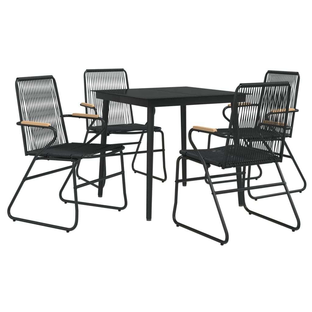 This 5-piece garden dining set is a fab mix of style and practicality, giving you the perfect setup for outdoor meals. Its sleek modern design doesn’t just serve as a dining area, it also jazzes up your patio or terrace, creating a comfy space for get-togethers with family and pals.