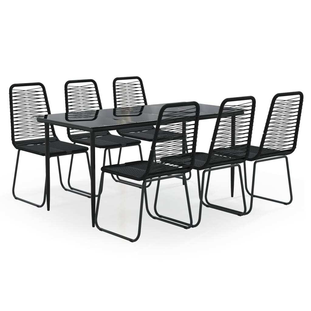 This 7-piece garden dining set blends modern style with practical features, created for relaxed and stylish outdoor dining. The sleek black color gives it a contemporary touch, making it a great fit for your patio, garden, or balcony, fitting right in with any outdoor decor while also providing elegance and comfort.