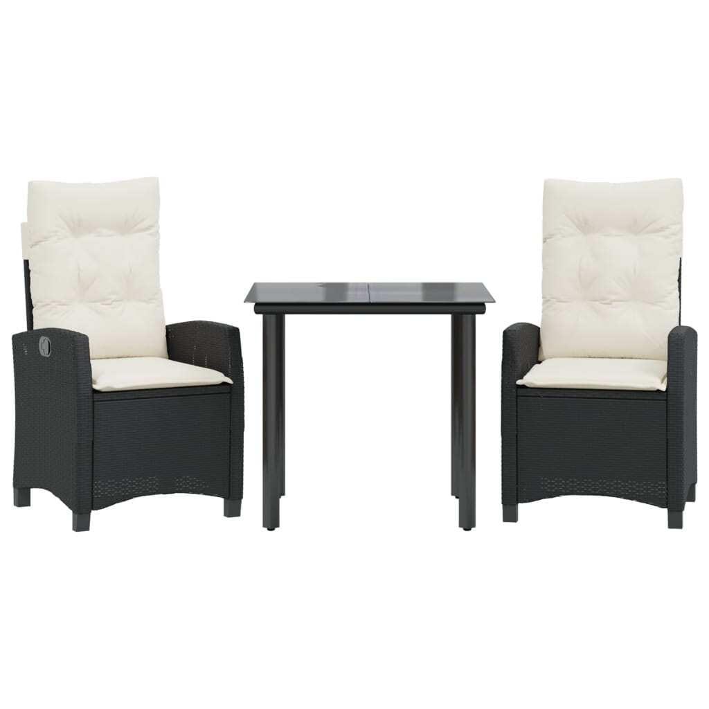 This 3 Piece Garden Dining Set with Cushions is a stylish and inviting option for outdoor dining, mixing practicality with a modern feel. Made from sturdy PE Rattan and tempered glass, it sports a sleek black finish, perfect for relaxing and dining in gardens, patios, or balconies.