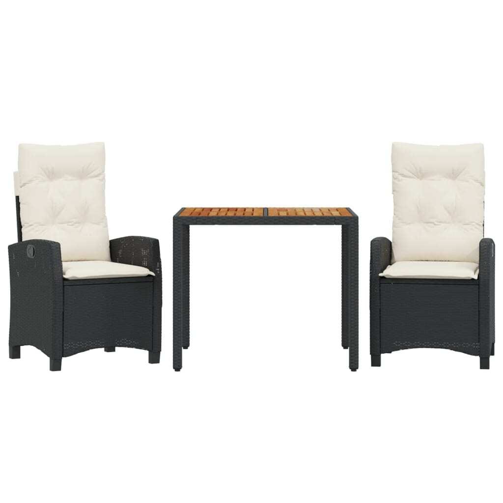 This 3-Piece Garden Dining Set is perfect for chilling outside. With a sleek modern design, it includes a solid acacia wood table and two comfy reclining chairs with plush cushions, making it great for small gatherings on your balcony, garden, or patio.