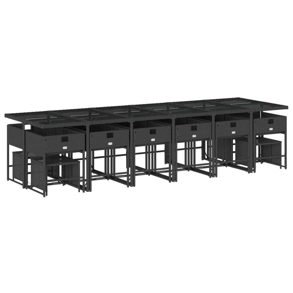 This 17-piece garden dining set is made for outdoor get-togethers, blending elegance with comfort, perfect for family gatherings or friendly dinners under the stars. With its sleek black poly rattan look and cream-white cushions, it fits right in on any patio or garden, inviting friends and family to enjoy meals in style.