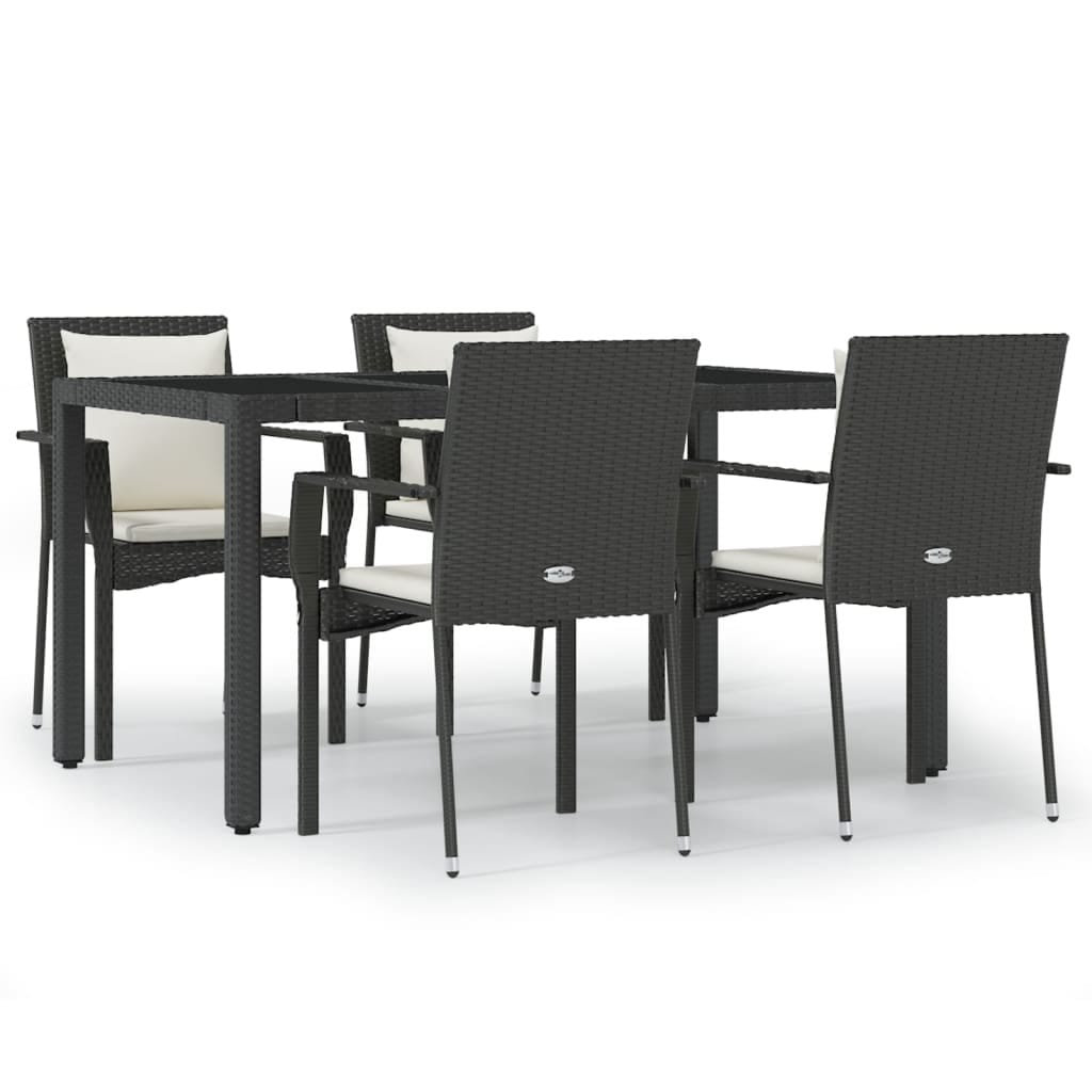This 5-piece garden dining set combines a modern style with practicality, designed to enhance your outdoor dining experience. Its sleek profile and comfy cushions make it a great choice for memorable meals outside, whether it’s a friendly brunch or an intimate dinner with loved ones.