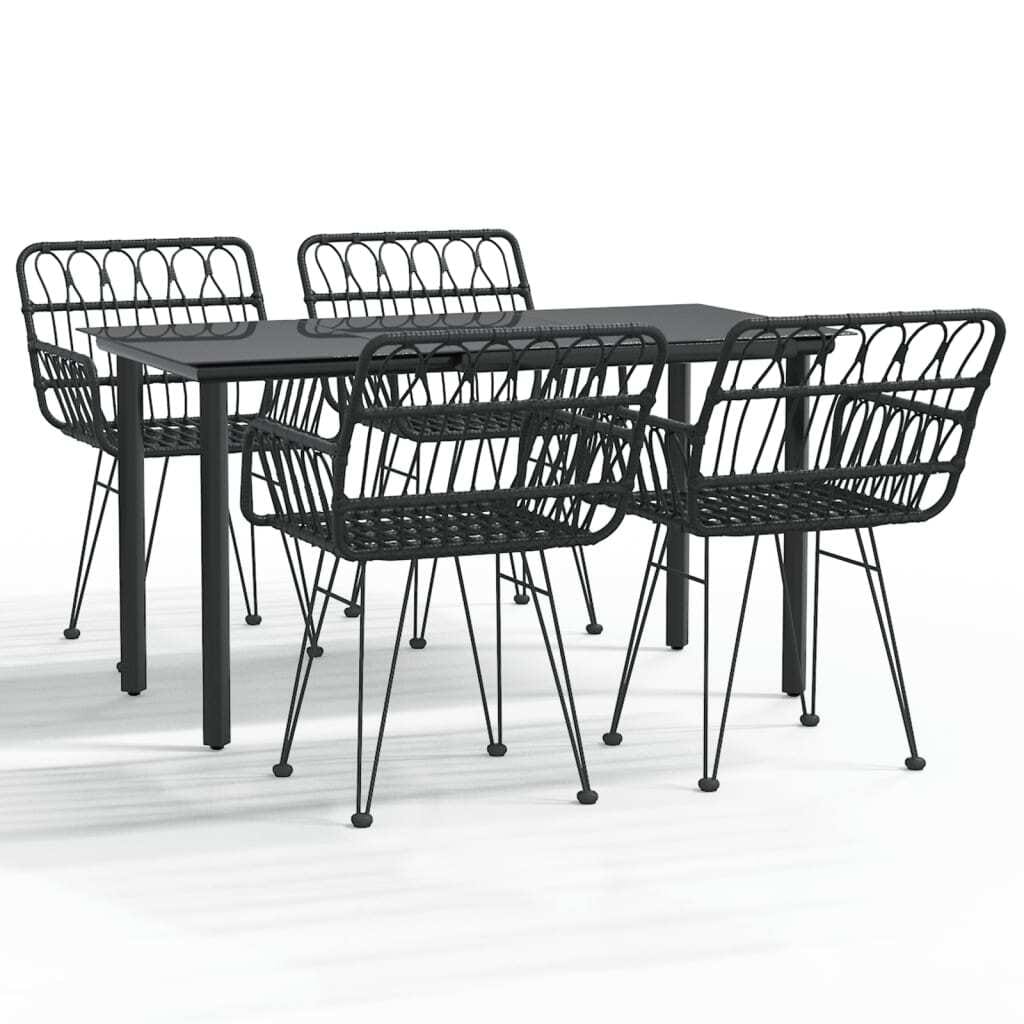 This 5-piece modern garden dining set blends elegance with practicality, giving your outdoor space a stylish vibe. It’s perfect for social gatherings or quiet dinners, featuring a solid glass top and four comfy poly rattan chairs to enjoy your balcony or patio in style.
