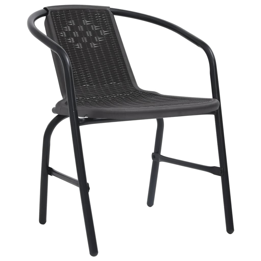 This black 5-piece garden dining set catches the eye with its stylish and modern design, making it a fantastic addition to your outdoor space. It includes a square table and four stackable chairs, giving you both comfort and flair for dining with family and friends, or just chilling outside.