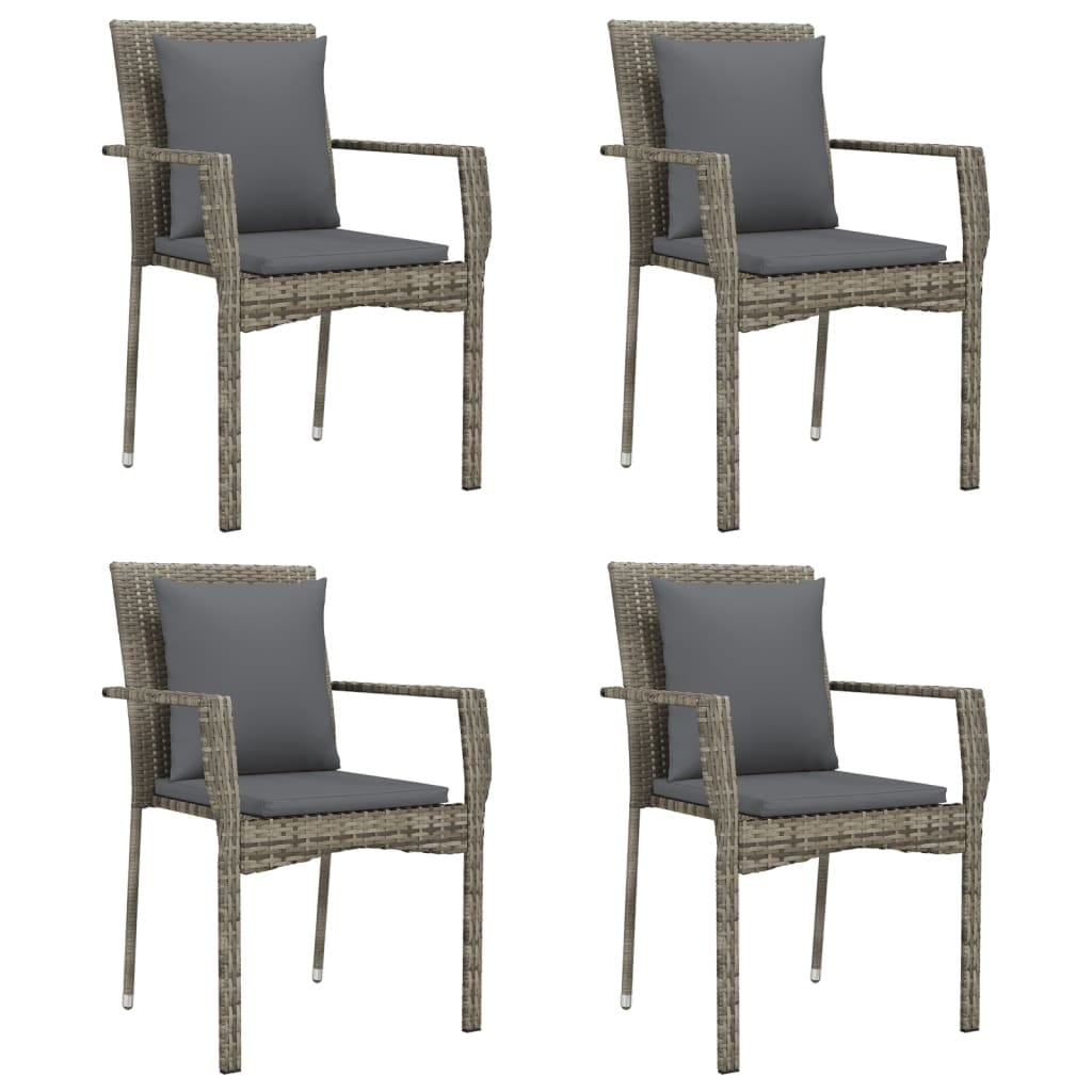 This 5-piece Garden Dining Set blends elegance and practicality, making it a welcoming spot for outdoor hangs. With its sleek grey poly rattan and tempered glass top, it offers a contemporary vibe, perfect for patios, backyards, or terraces, creating a lively setting for entertaining friends and family.