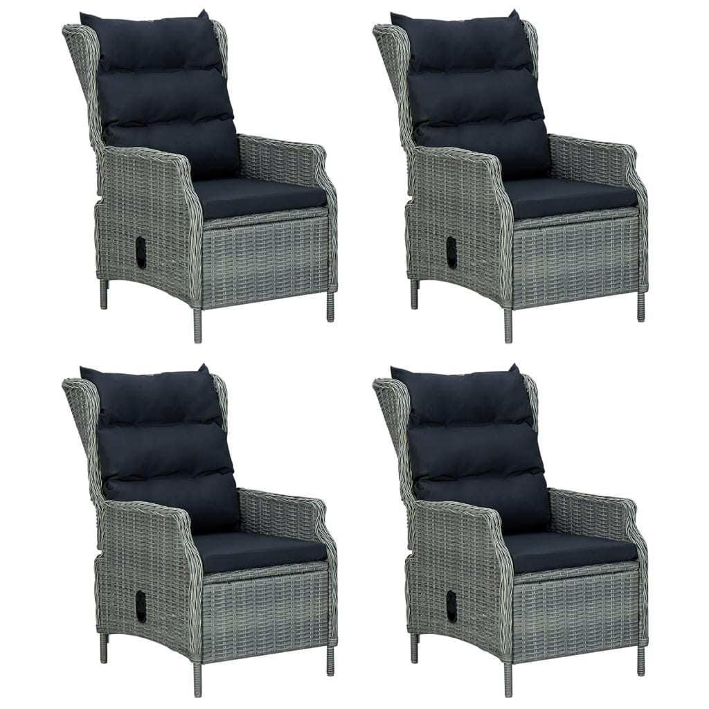 This 5-piece garden dining set mixes style and practicality for outdoor dining. It’s perfect for balconies or gardens, featuring a lovely light grey poly rattan finish that brightens any outdoor space, creating a great vibe for family meals or intimate get-togethers.