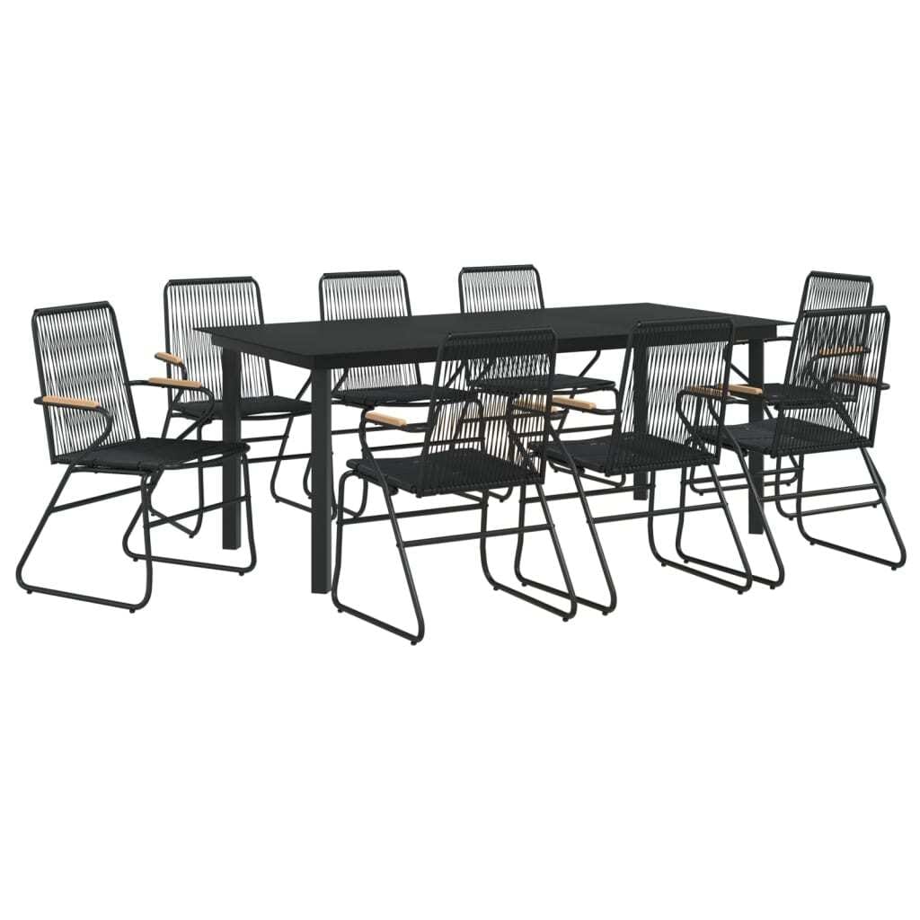 This 9 Piece Garden Dining Set combines style with practicality, enhancing your outdoor dining experience. It has a large rectangular table and comfy chairs, making it perfect for family get-togethers or hanging out with friends in your garden or patio. There’s plenty of room for food, drinks, and laughter under the open sky.