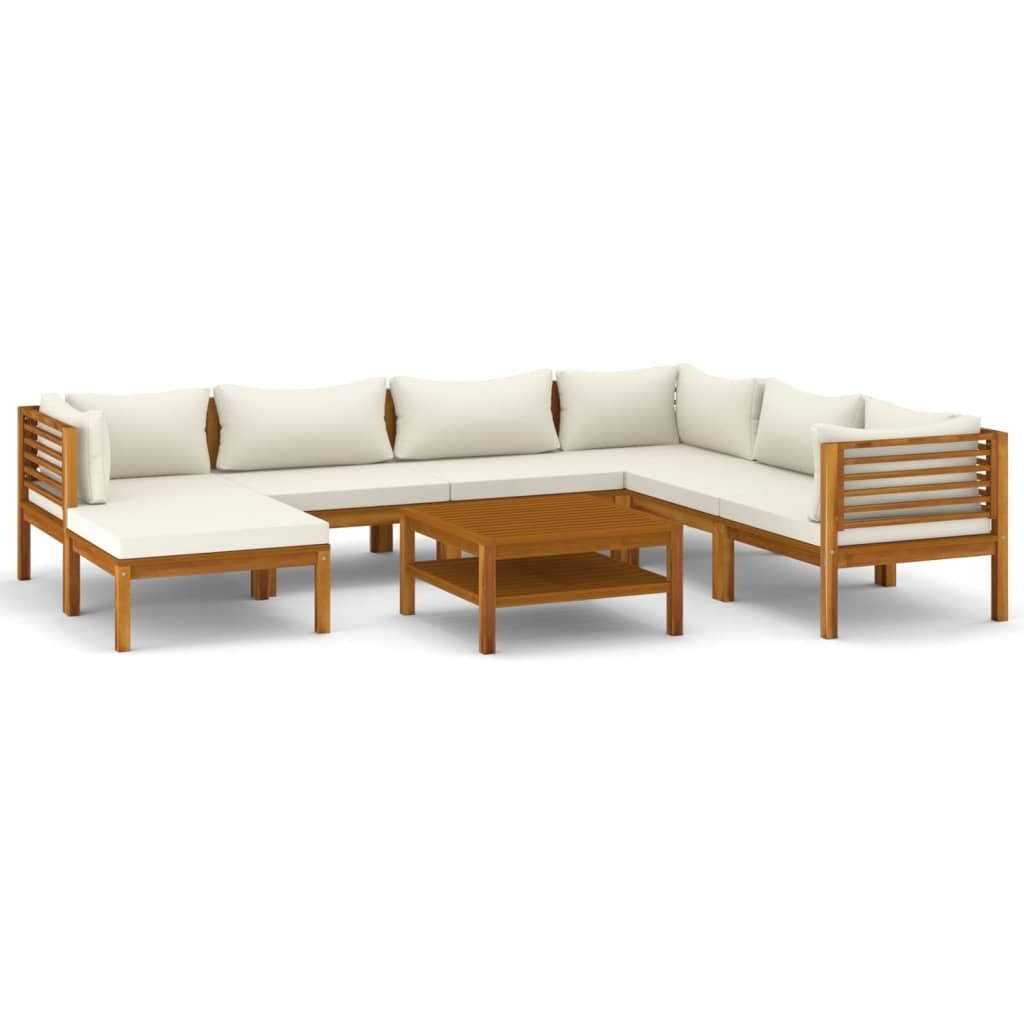 This 8-Piece Outdoor Garden Lounge Set is a brilliant mix of style and functionality for your outdoor space, giving you a comfy spot to relax with family and friends. The luxe cream cushions look great against the rich brown acacia wood, creating a warm vibe that’s perfect for any patio, balcony, or garden.
