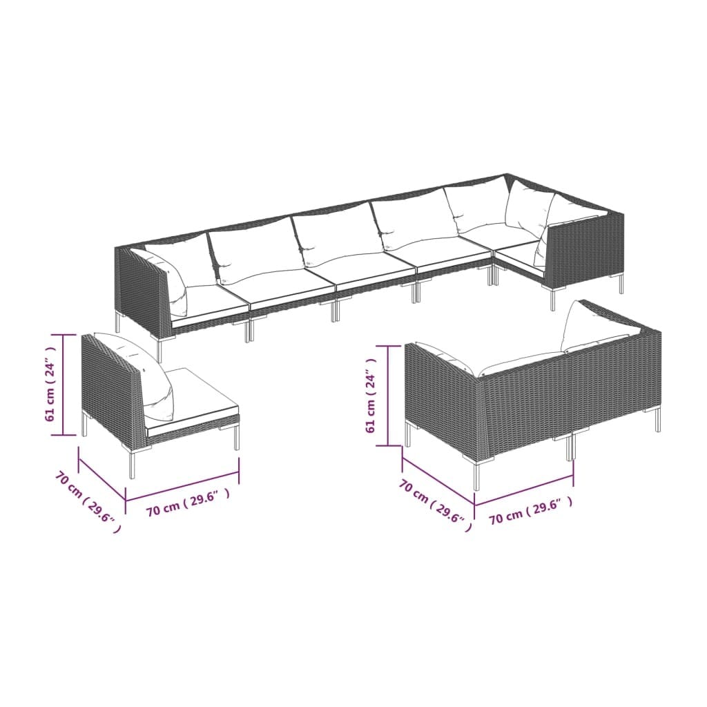 - Delivery Contains: 5 Corner sofas, 4 Middle sofas, 9 Seat cushions, 14 Back cushions
