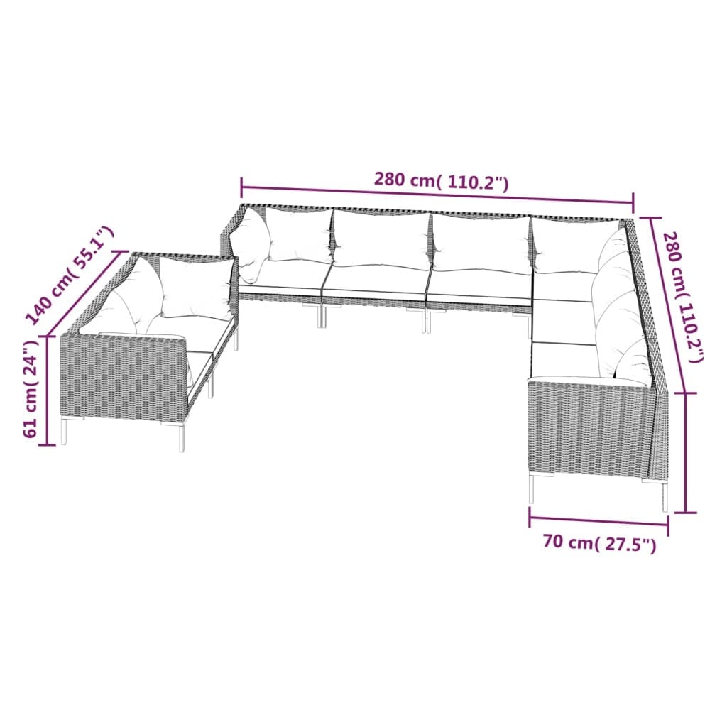 This 9-Piece Garden Lounge Set with Cushions creates an inviting vibe perfect for outdoor chilling and get-togethers. With a sleek and modern style, it fits right in on your balcony or in the garden, comfortably seating up to nine people and adding a stylish flair to your outdoor furniture collection.