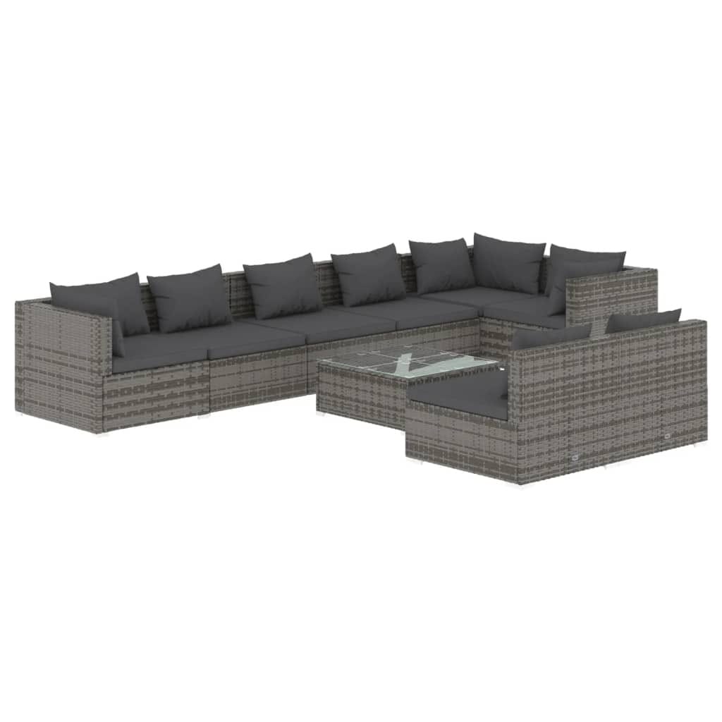 This 9-piece garden lounge set is all about modern design and practicality, giving you a brilliant outdoor seating option for get-togethers and chilling out. Made from robust poly rattan with a cool grey finish, it’s perfect for family and friends to enjoy the outdoors.