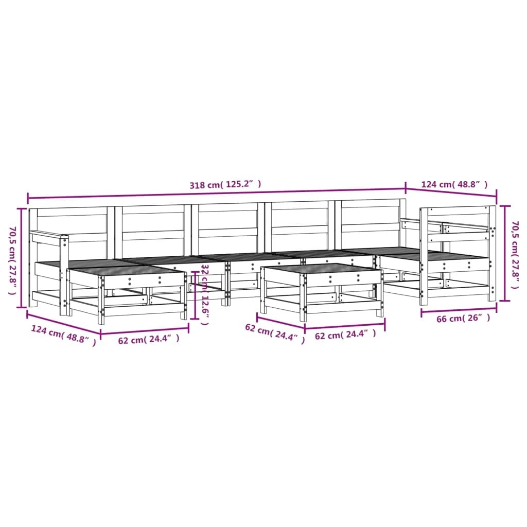 This 8-piece garden lounge set turns outdoor spaces into lovely retreats with its classy yet rustic style. Made mostly from solid pine wood, its natural finish and grainy texture create a warm, comfy vibe that’s just right for relaxing or hosting in gardens or patios. With plenty of seating and the ability to set it up how you like, it’s perfect for any occasion, fitting beautifully in whatever space you’ve got.