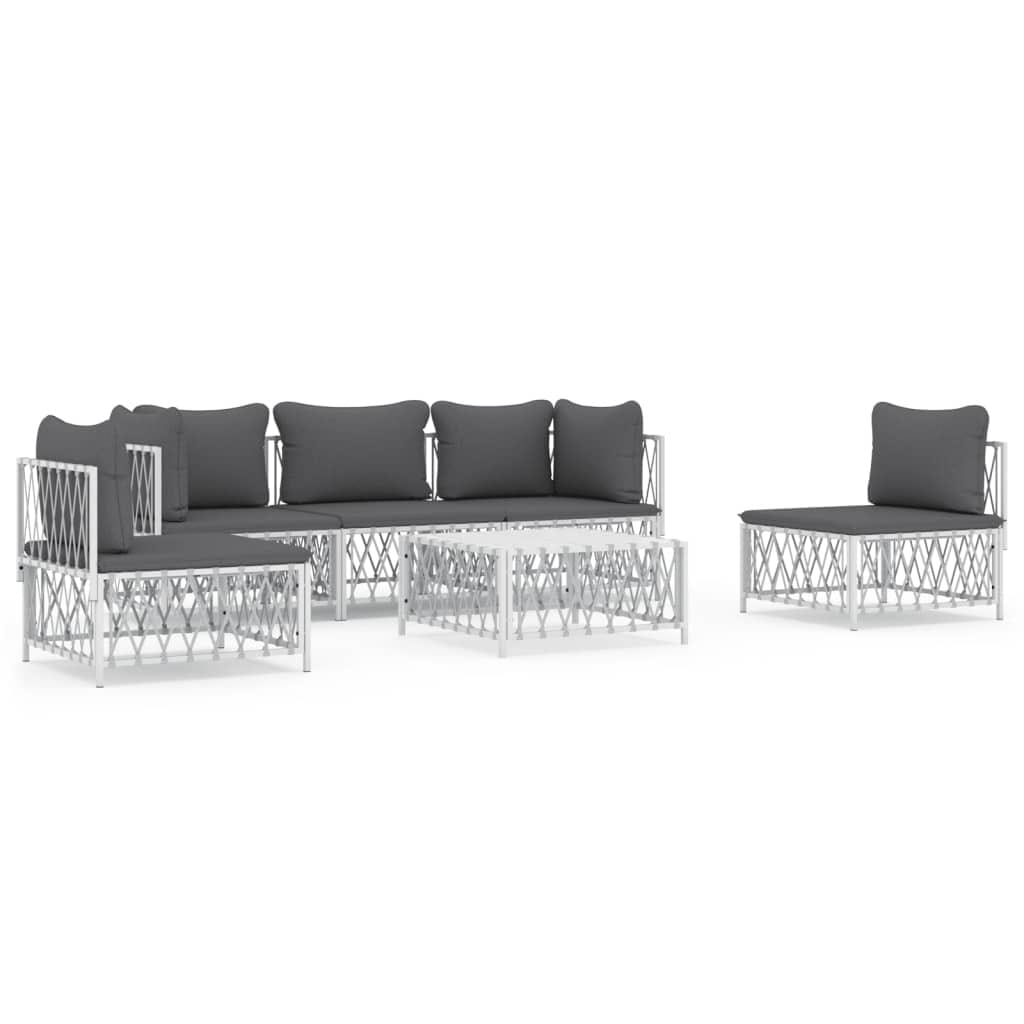 This 6-Piece Modular Garden Lounge Set mixes practicality and style, making it a top choice for any outdoor area. With its snazzy white finish and dark grey cushions, it’s not just about looks – it’s comfy too, perfect for hanging out with family and friends or for fun outdoor parties.