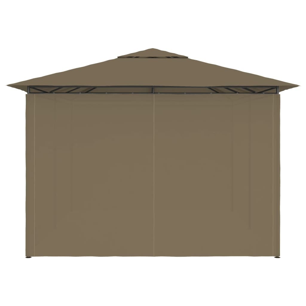 It features a stylish vented roof design that allows for improved airflow and added comfort. This strong and durable marquee has a powder-coated steel frame. The roof canopy and the elegant, adjustable drapes are made of polyester fabric with a polyamide coating, which makes UV, water and weather proof and thus very suitable for outdoor use! The fully closable curtains will allow you to enjoy a peaceful night in privacy.