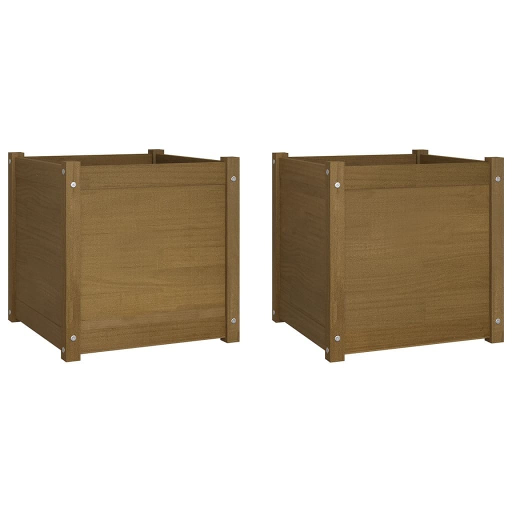 This set of rustic garden planters is all about being stylish and functional for any outdoor space. Made from solid pine wood, the planters sport a warm honey brown finish that enhances their look and lets them blend in nicely with nature, creating the perfect spot for your flowers or plants.