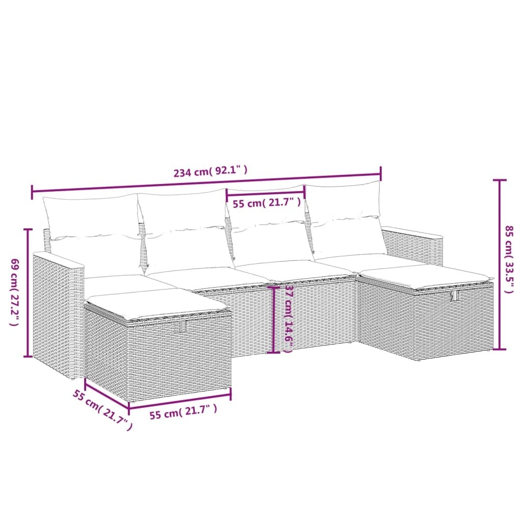 - Delivery Contains: 2 x Center seat, 2 x Arm sofa, 2 x Footstool, 6 x Back cushion, 6 x Seat cushion