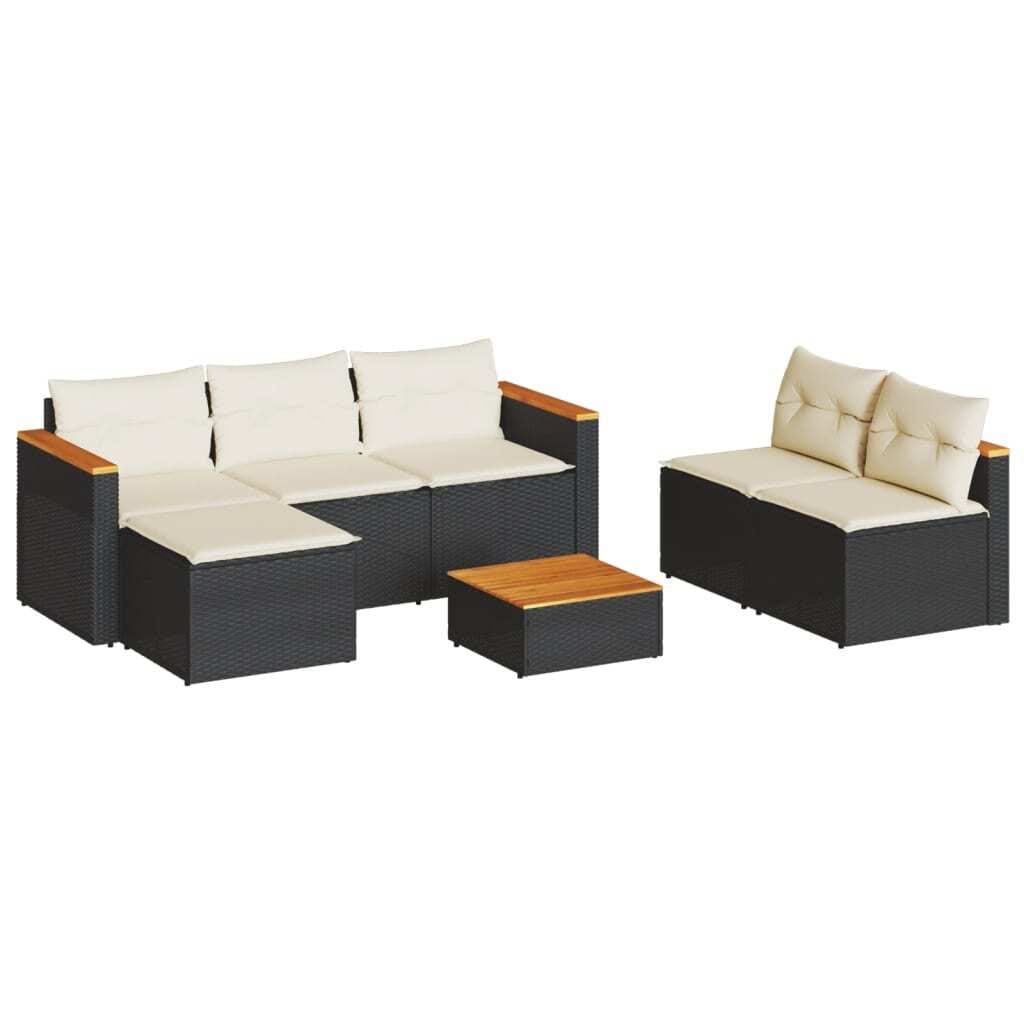 - Delivery Contains: 1 x 3-seater sofa, 2 x Armless sofas, 1 x Garden table, 1 x Footstool, Cushions