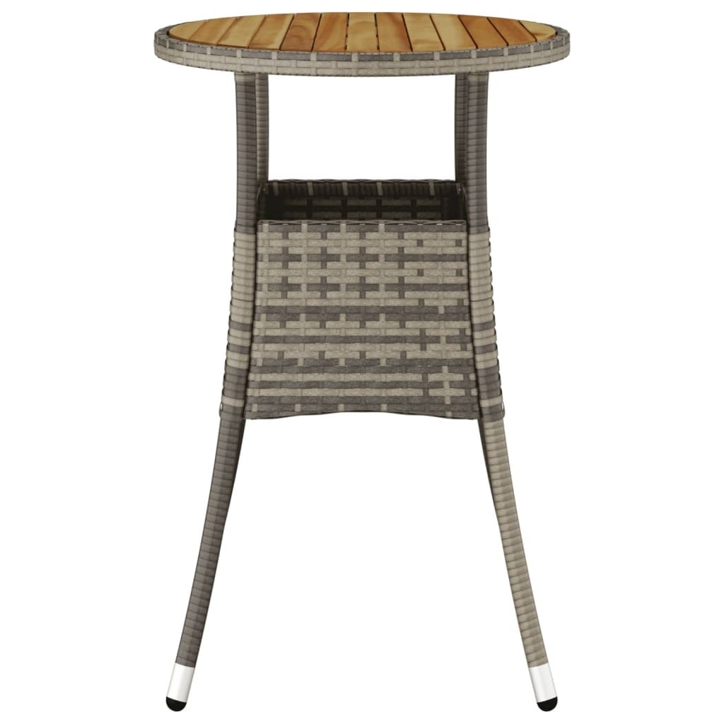 This garden table is a fab mix of style and function, made to up your outdoor game. Its round shape, paired with grey poly rattan and solid acacia wood, creates a welcoming space for dining and looks great in any modern outdoor setup.