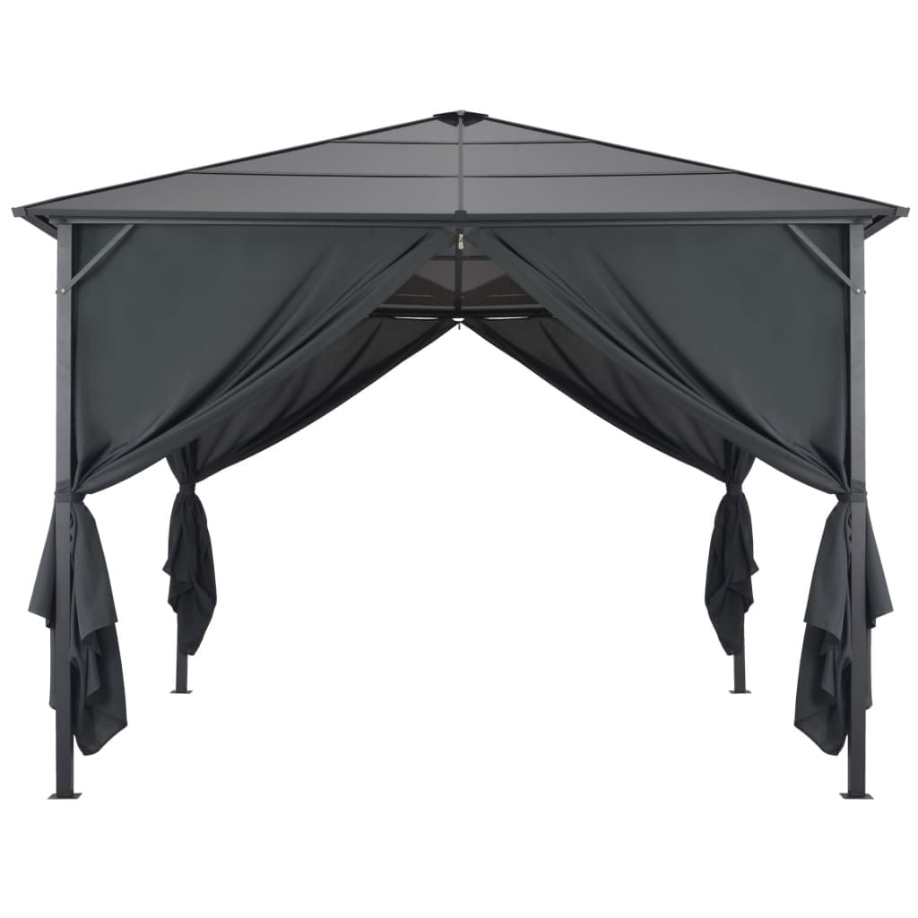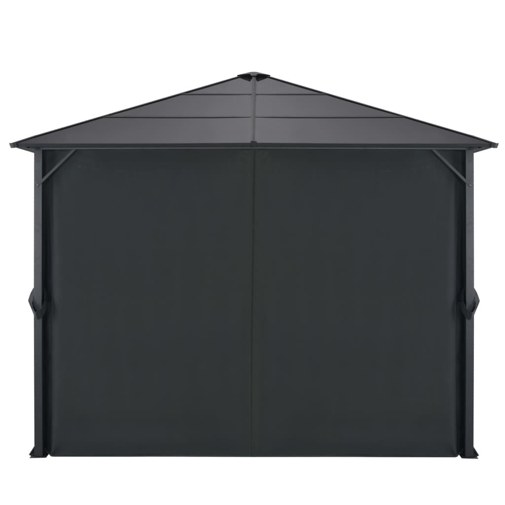 The roof, made of 0.2″ thick UV-proof PC board, guards you from the glare and harmful UV rays of direct sunlight. The gazebo is solidly constructed from strong aluminum and steel, and is consequently very stable. The pavilion is delivered with 4 sidewalls, which can be drawn in bad weather. Hook and loop fasteners are also included for easy attachment of the curtains.