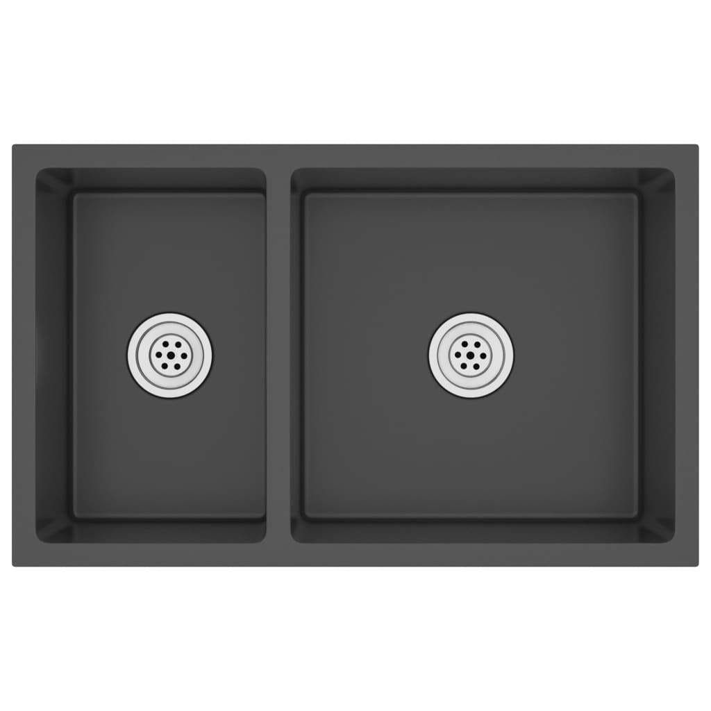 This kitchen sink is a timeless addition to your existing kitchen decor. It features extra-deep basins and a sleek design.