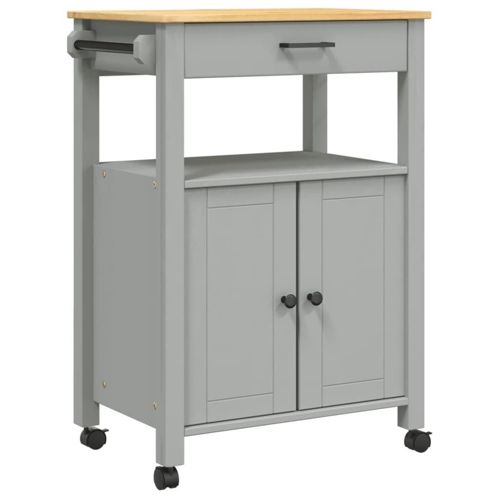 - Durable material: Solid pine wood is a beautiful natural material. Pine wood has a straight grain, and the knots give the material its signature, rustic look. Made of solid pine wood, this kitchen storage trolley is durable and sturdy.