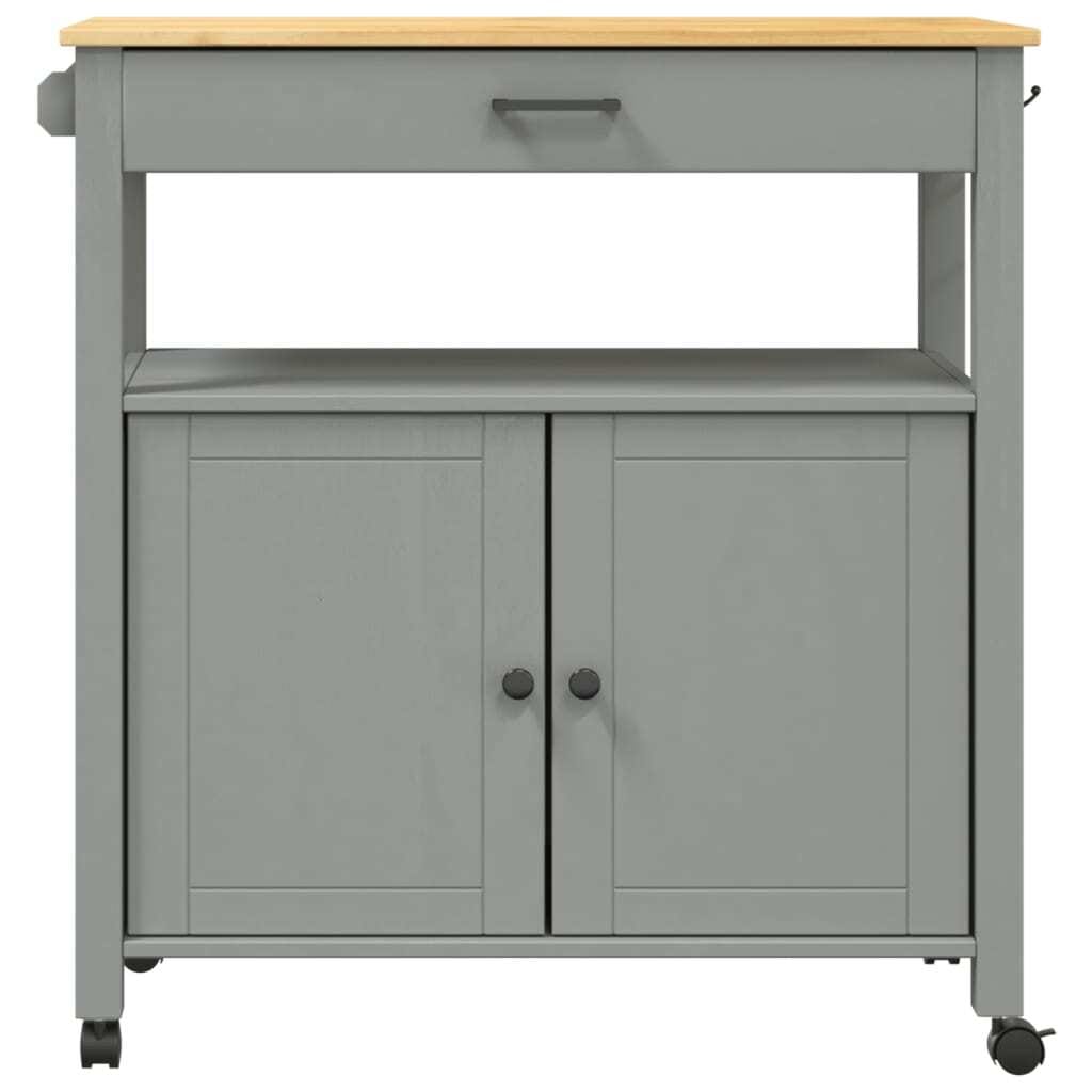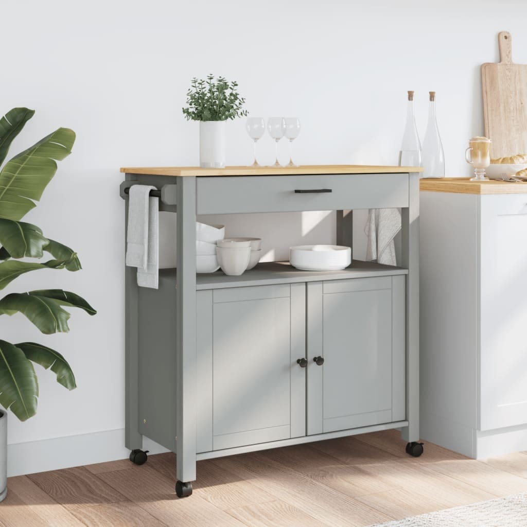 - Durable material: Solid pine wood is a beautiful natural material. Pine wood has a straight grain, and the knots give the material its signature, rustic look. Made of solid pine wood, this kitchen storage trolley is durable and sturdy.