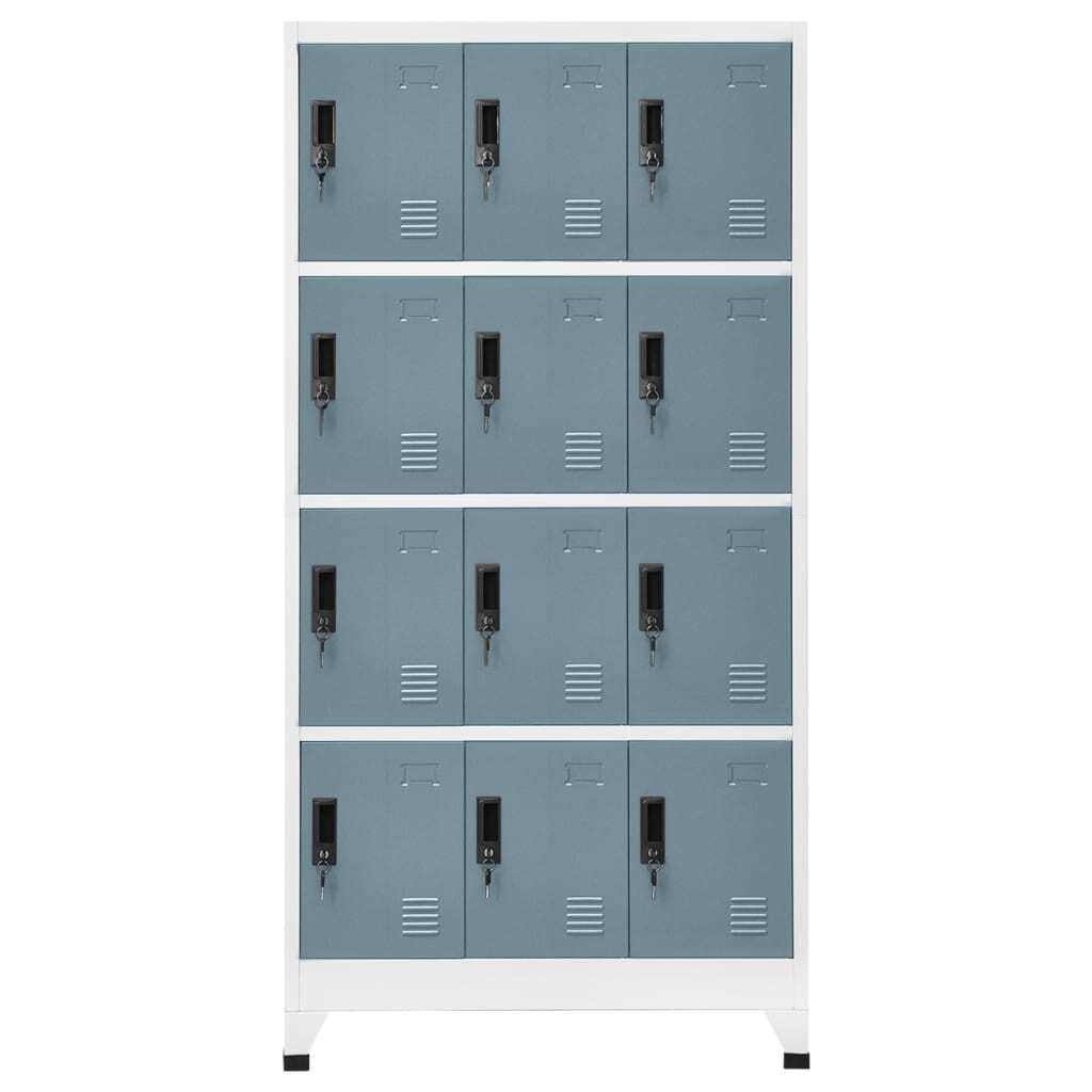 This locker cabinet is a stylish and secure way to store things in different places, perfect for schools, offices, or utility rooms. With its modern design in light and dark gray, it uses space well while keeping things organized, whether it’s office supplies or sports gear.