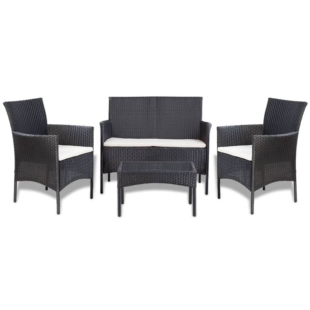 Outdoor Furniture Set Black and Cream White PE rattan