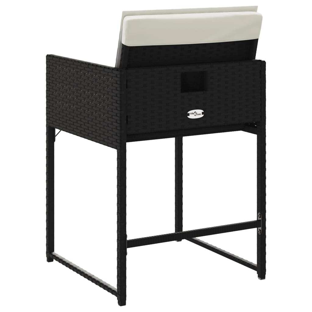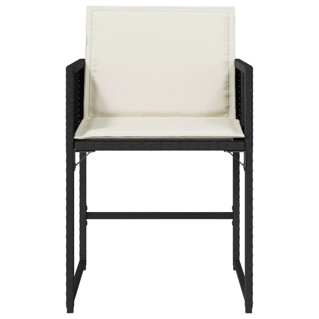 This 4-piece patio dining chair set is perfect for those who like a bit of modern style with their comfy outdoor seating. The black poly rattan and stylish cream cushions create a welcoming vibe for alfresco meals on your terrace, balcony, or garden.