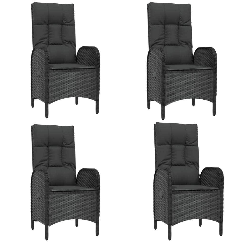 This 5-piece patio dining set blends elegance and functionality, perfect for outdoor dining and relaxing. The sleek black poly rattan design gives it a modern yet inviting look, ideal for brightening up your balcony or garden.