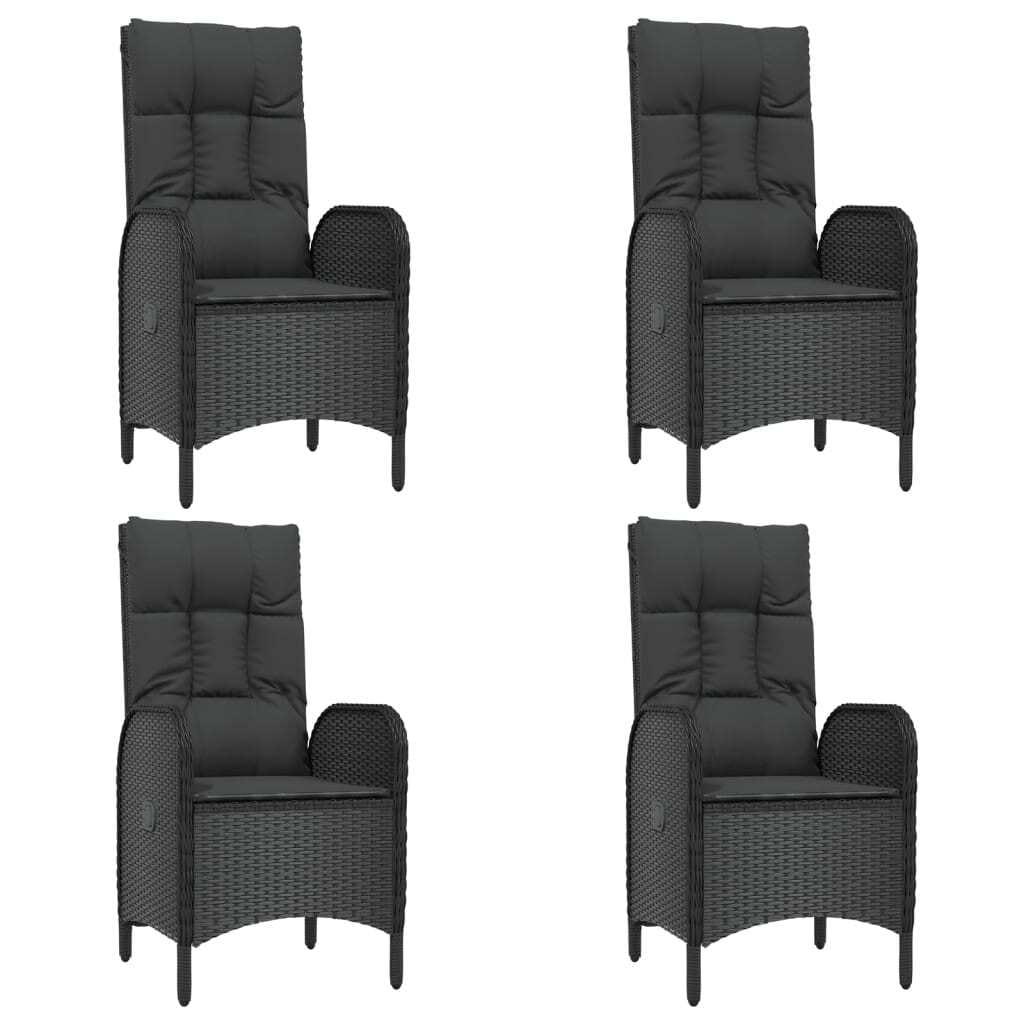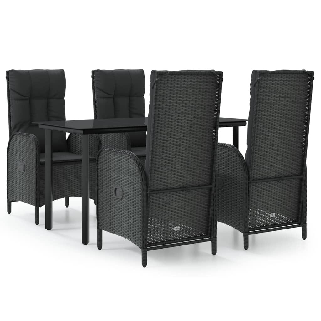 This 5 Piece Patio Dining Set is a fab setup designed for outdoor dining and relaxation, with a modern vibe that brightens up any balcony or garden. It features a sleek black aesthetic and is made from durable materials like PE rattan and powder-coated steel, giving you a great dining option for up to four people while adding a touch of elegance to your outdoor space.