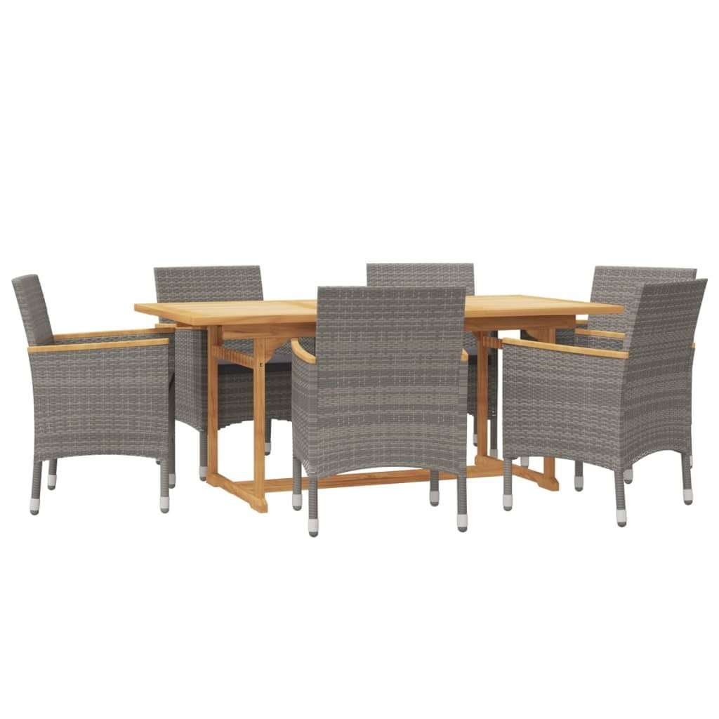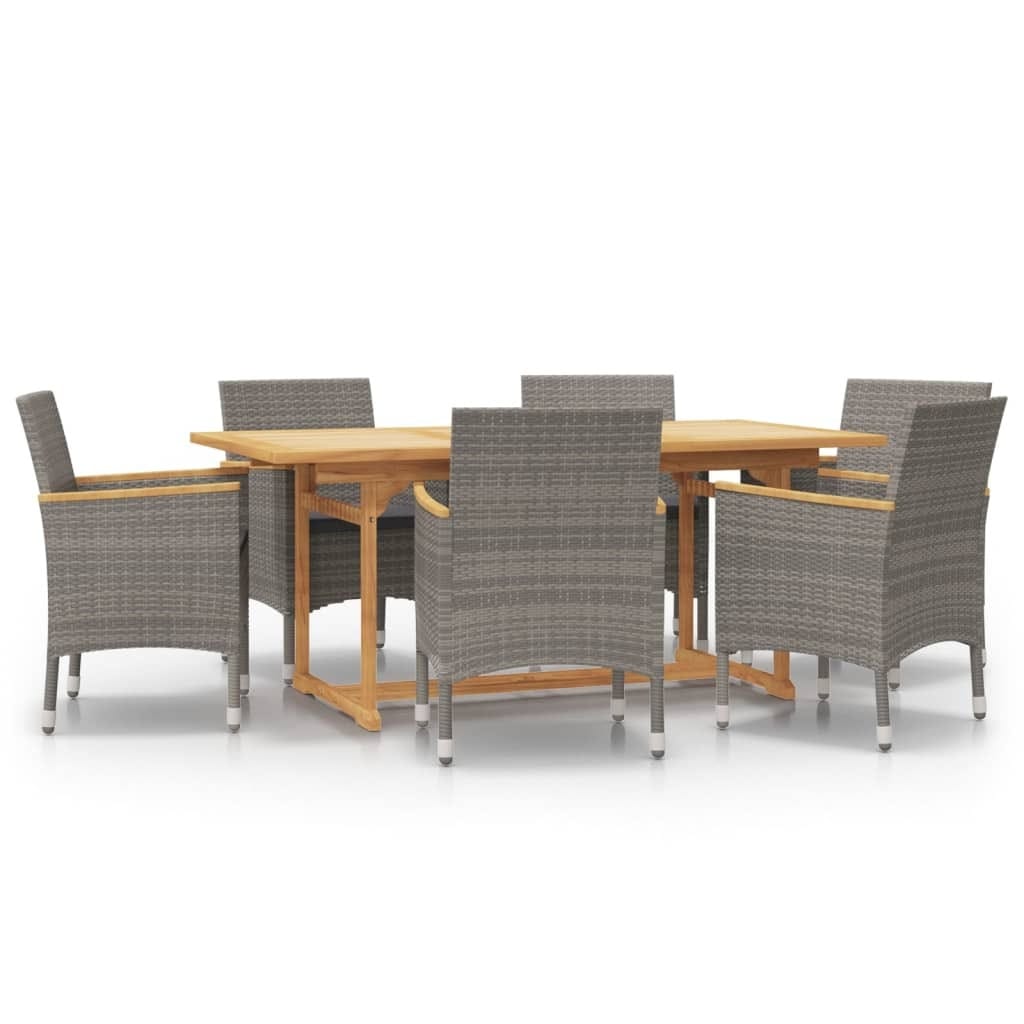 This 7 Piece Garden Dining Set with Cushions is a fab addition to any outdoor space, providing stylish and comfy seating for up to six people. With a classic design and a chic grey color scheme, it enhances your patio, garden, or terrace while offering comfort for family get-togethers or garden parties.