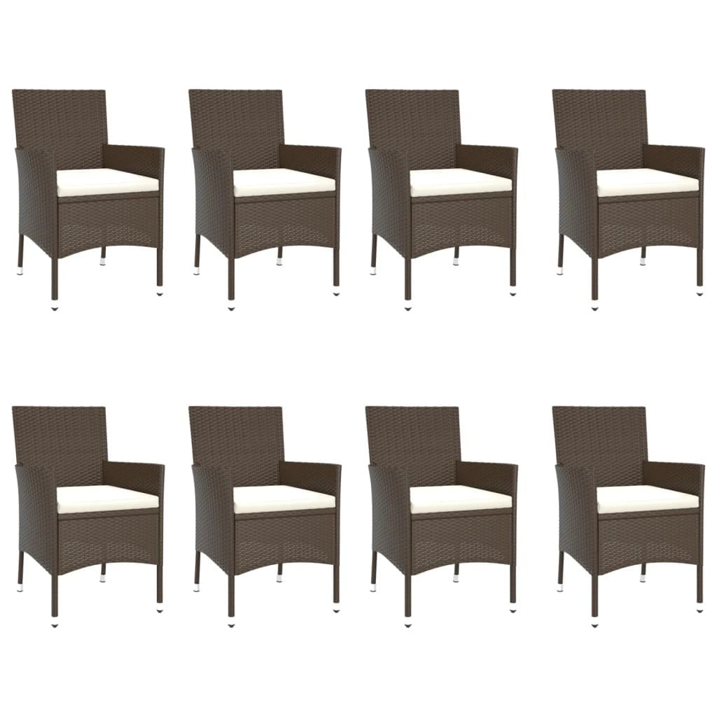 This outdoor dining set combines elegance and comfort, perfect for gatherings on your garden balcony or patio. Crafted from sturdy poly rattan with classic brown tones, the set can accommodate up to eight people, providing a welcoming space for dining and relaxation.