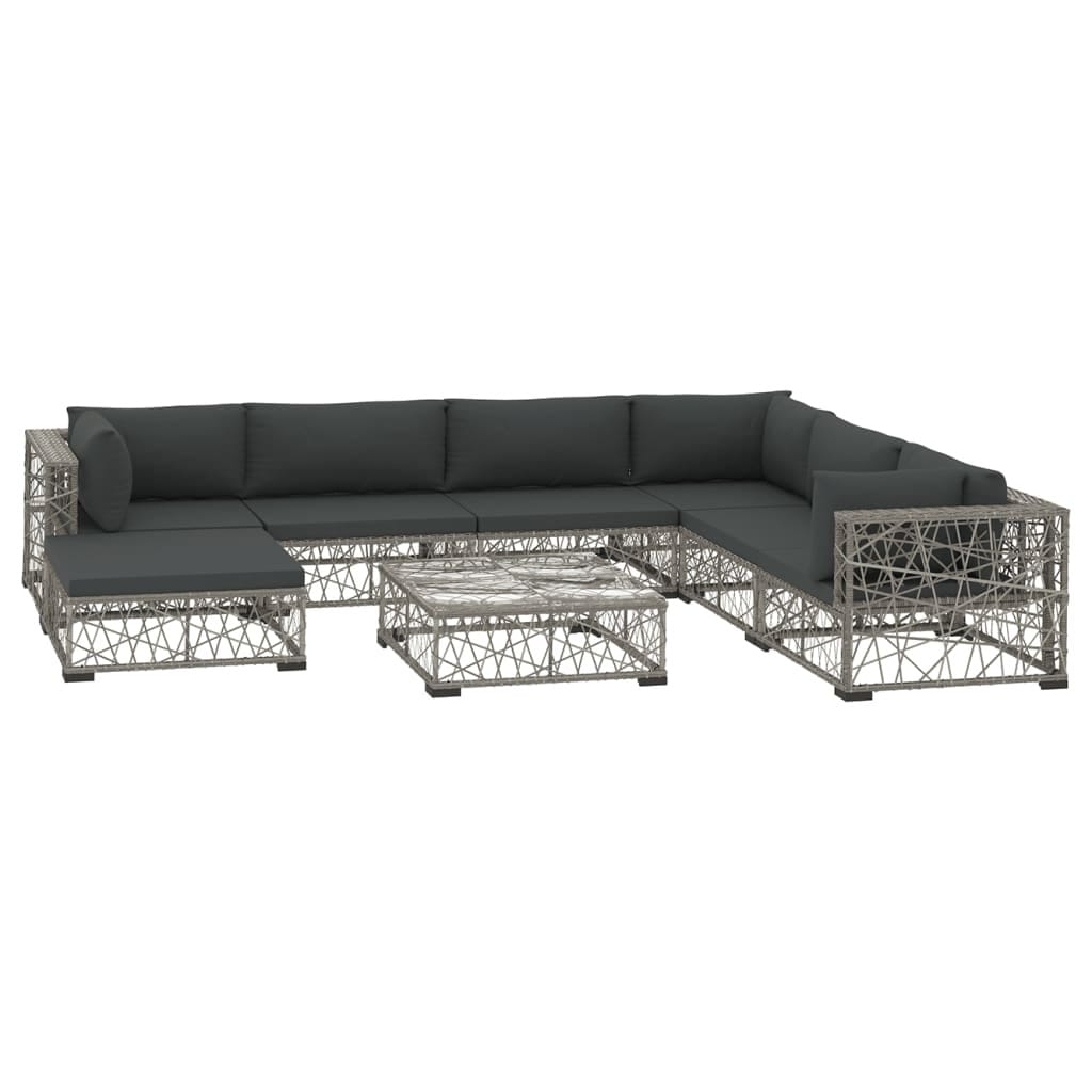 This 8-piece garden lounge set is a comfy and stylish choice for chilling outdoors. The modern grey color and modular layout make it adaptable for patios, gardens, or terraces, perfect for relaxing and socializing.