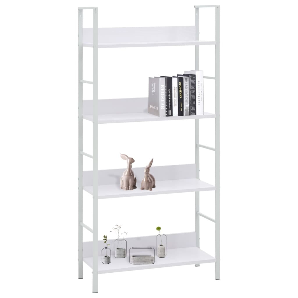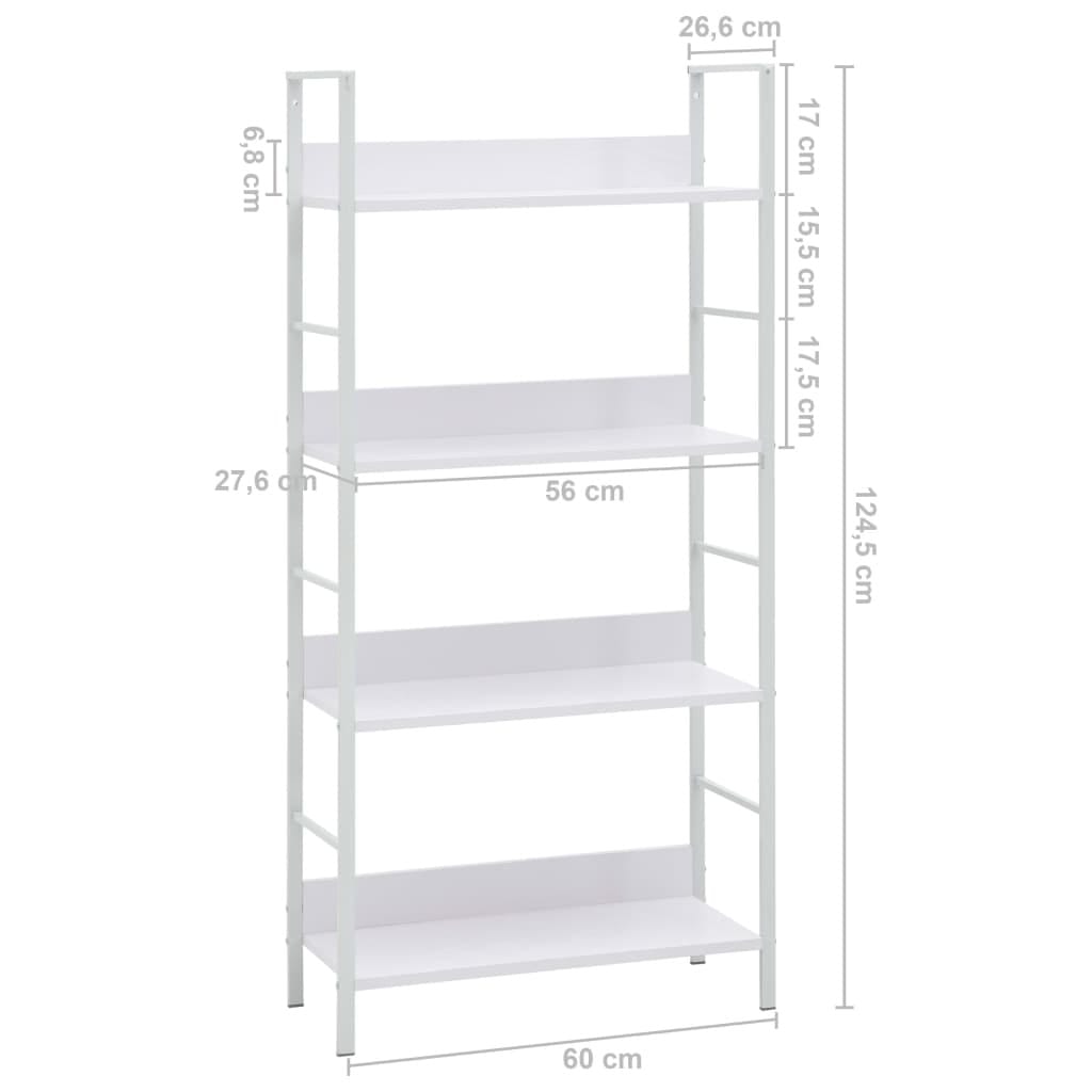 This 4-tier bookshelf is a stylish piece that combines function with a trendy industrial look, perfect for displaying your favorite books and decorations. Great for indoor spaces like living rooms, bedrooms, and kitchens, it brings a charming vibe to any room and adds character with its sleek lines and pristine white finish.