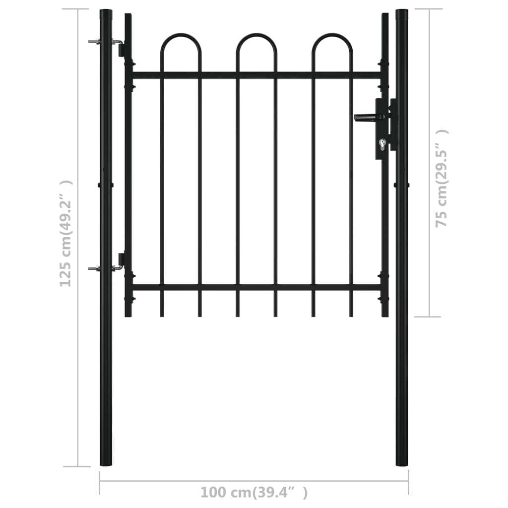 With its elegant hoop top design and a strong horizontal brace to reinforce the frame, our garden gate will provide security, while forming a fabulous entryway onto your property. Manufactured from heavy duty steel, the gate is powder-coated against corrosion. It also comes with a bolt hinge for quick locking, and mounting posts for easy installation. Three matching keys are also included in delivery. This gate is a great combination of style, strength and stability!